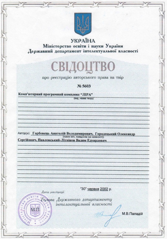 В 2002 году на ПК ЛИРА (базовый комплект соответствующий ПК ЛИРА 9.0) было оформлено авторское свидетельство