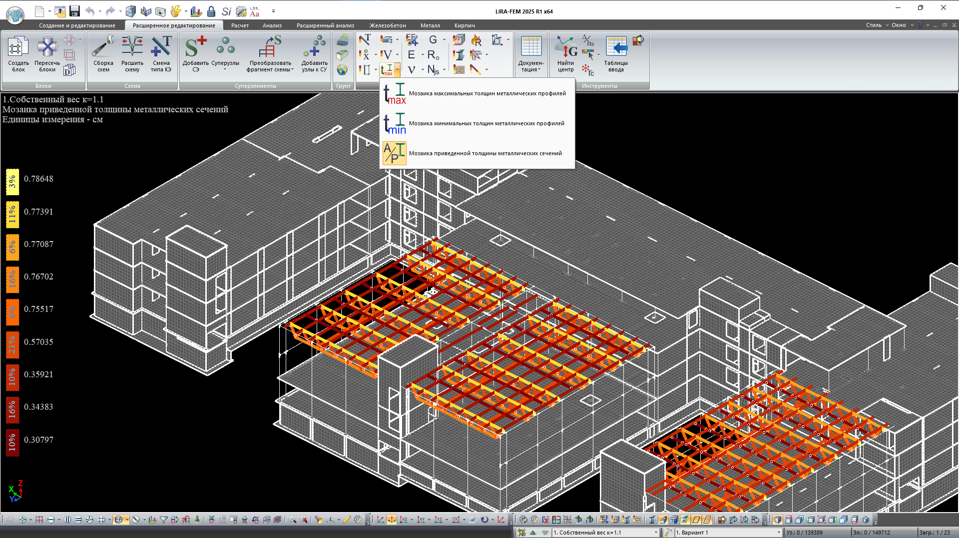 - Мозаика приведенной толщины металлических сечений (отношение площади поперечного сечения к длине периметра сечения).