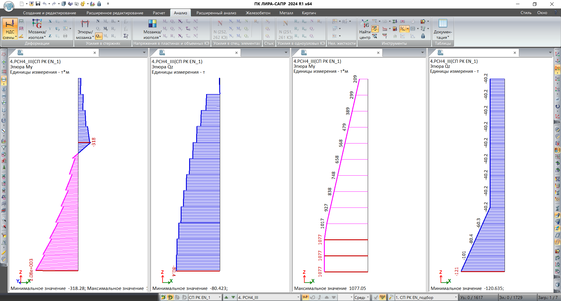 - LFORM - эпюра значений выбранных усилий преобразовывается к трапециевидной внизу и прямоугольной вверху;