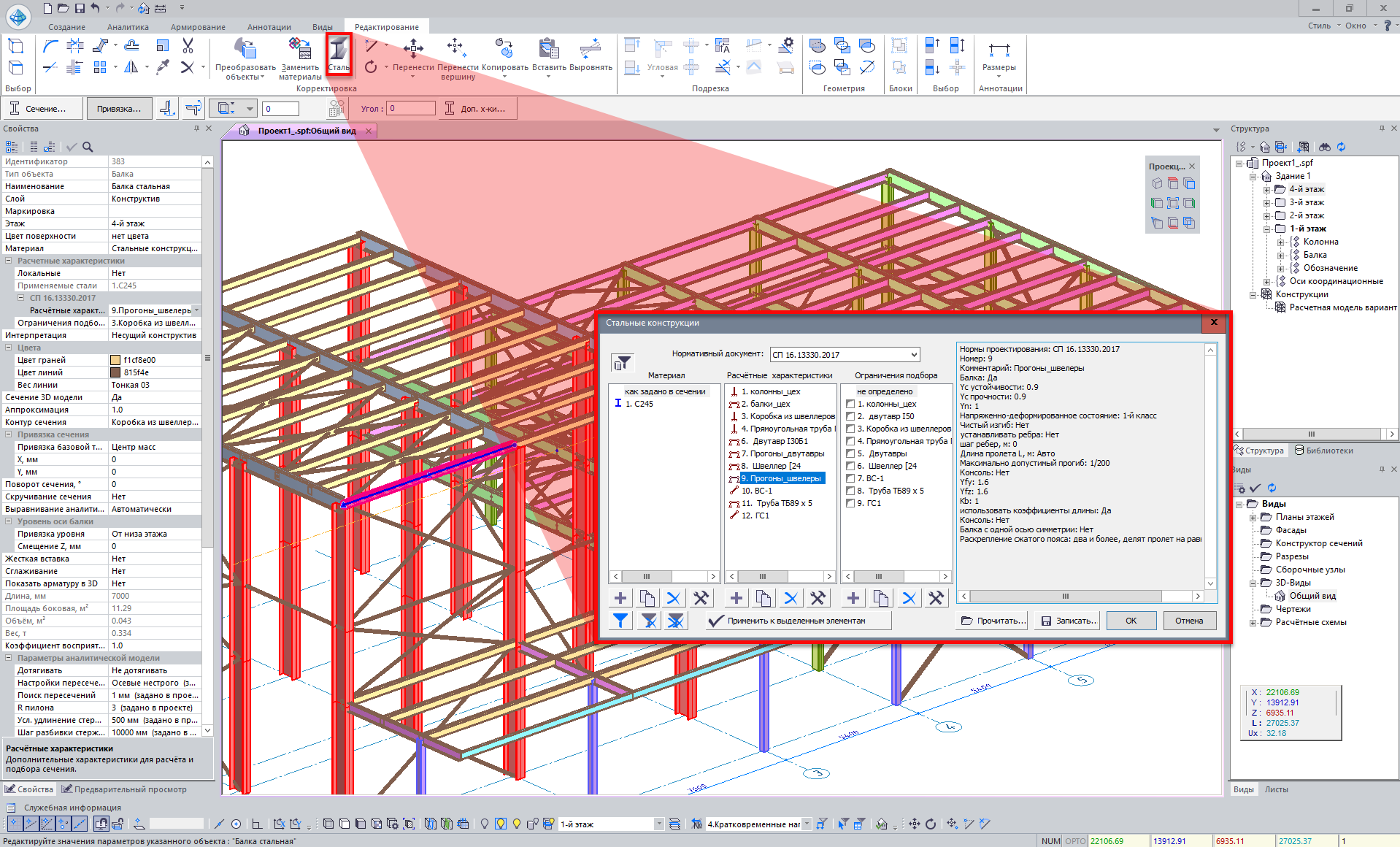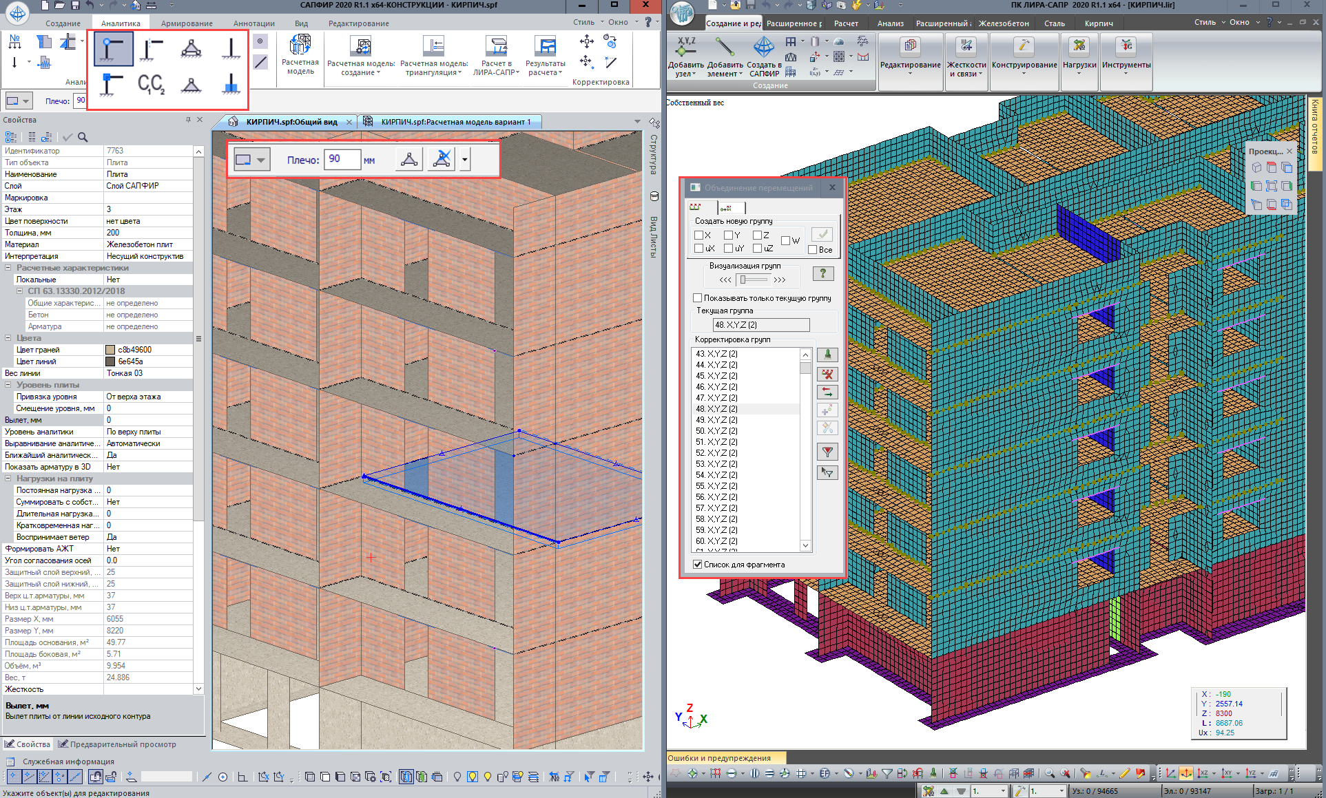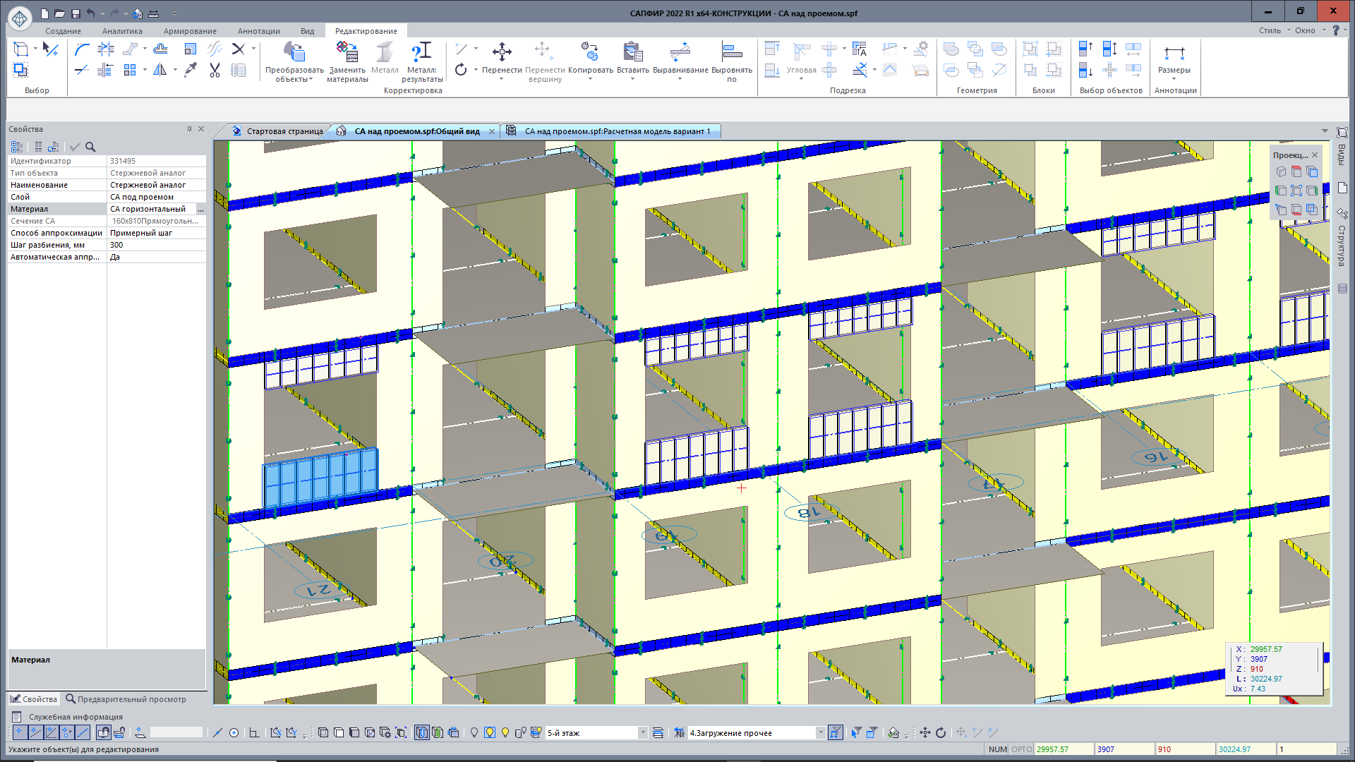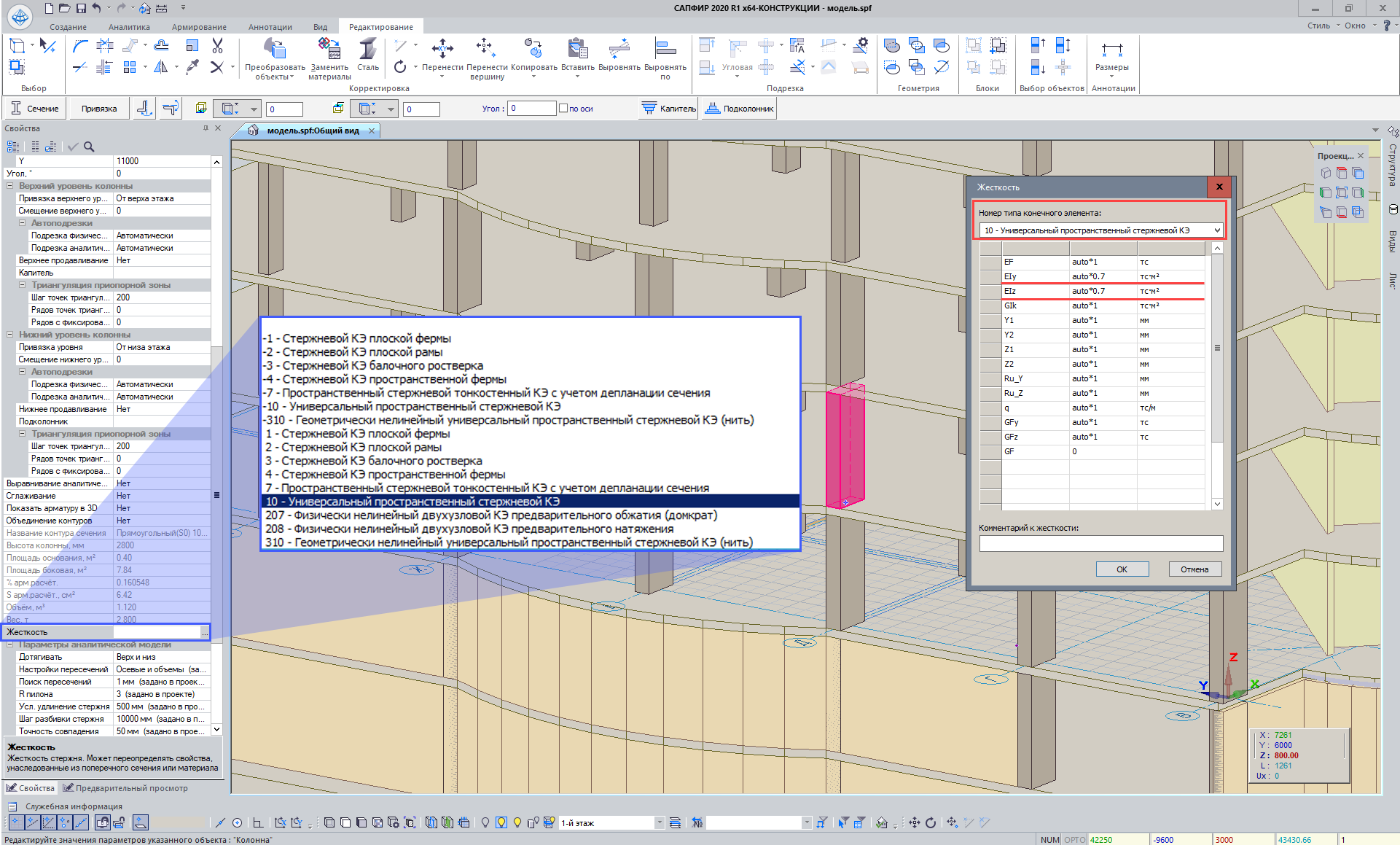Обеспечивает создание расчетной схемы на основе информационной 3D модели САПФИР