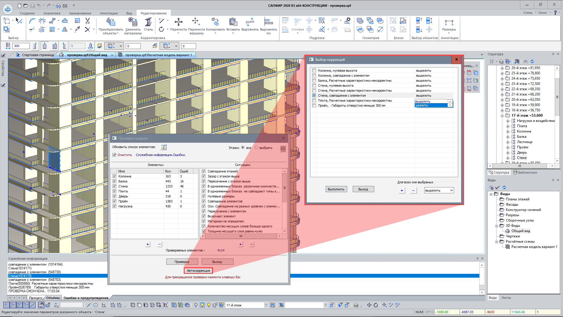 Как выполнять автоматическую генерацию стержневых аналогов, чем полезно отображение КЭ сети и абсолютно жестких тел в 3D модели, как улучшилась проверка модели и какие проверки выполняются. А также как можно в автоматизированном режиме разрезать стену колонной и сформировать абсолютно жесткое тело между колонной и стеной.