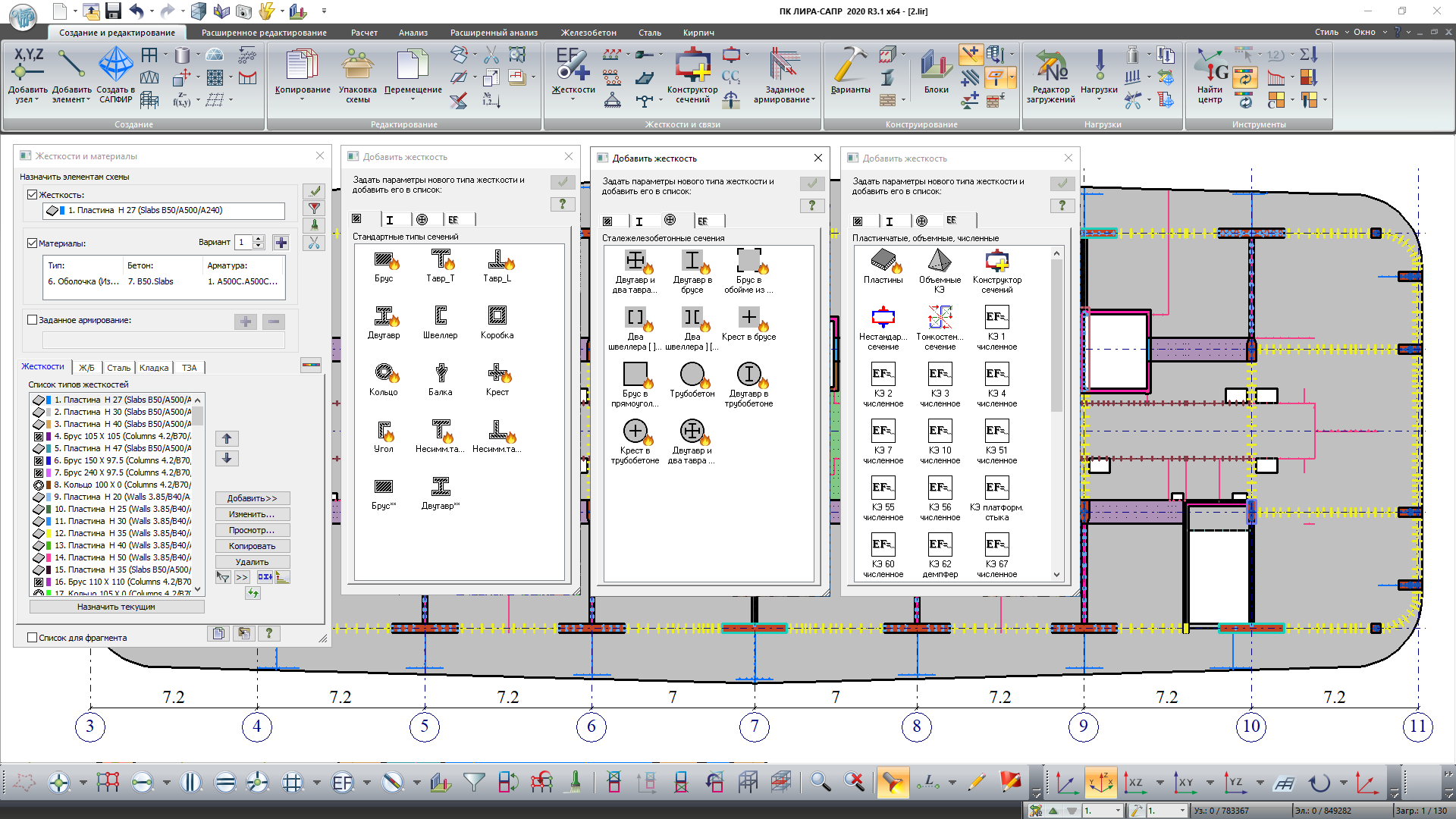 Конечно-элементная сетка формируется таким образом, чтобы её узлы располагаются не только в толщине сечения, но и по его периметру, а также вдоль полок и стенок для конструкций с жёсткой арматурой.