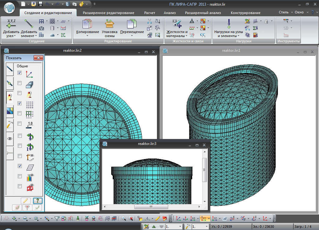единая – потому что пользователь, не покидая эту среду, проходит все этапы решения, от создания расчетной схемы до анализа результатов, может переключаться в любой выбранный режим и получать информацию с любого этапа, а также просматривать одновременно окна нескольких режимов (например, анализируя результат, можно параллельно просмотреть исходные данные);