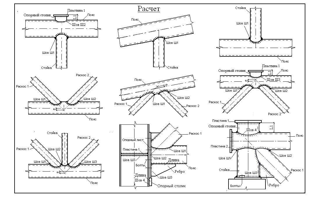 Реализован расчет параметрических ферменных узлов из трубчатых (круглого сечения) элементов – 9 основных узлов и 6 вариаций. Производится раскрой примыкающих элементов, определяется длина швов. Расчет выполняется в соответствии с СП 16.13330.2011.
