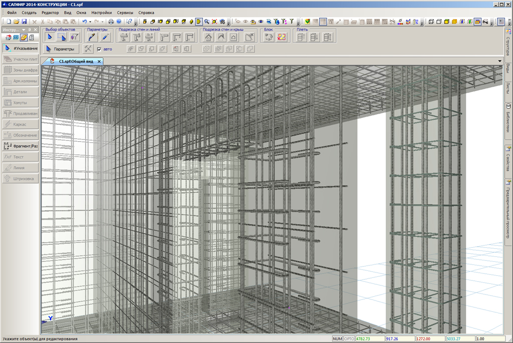Удобство и гибкость использования конструктивных блоков достигается благодаря возможности задания для них редактируемых параметров «вид конструктивного блока», «этаж», «марка», «комментарий», «цвет представления на схеме», анализа и контроля параметров «жесткость», «материалы».