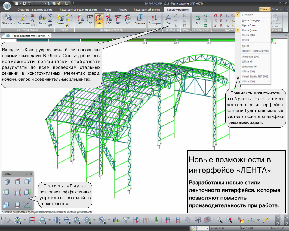 Создана панель инструментов «Виды», которая упрощает процесс работы с расчетной схемой и дает более простое и наглядное позиционирование схемы в рабочем пространстве.