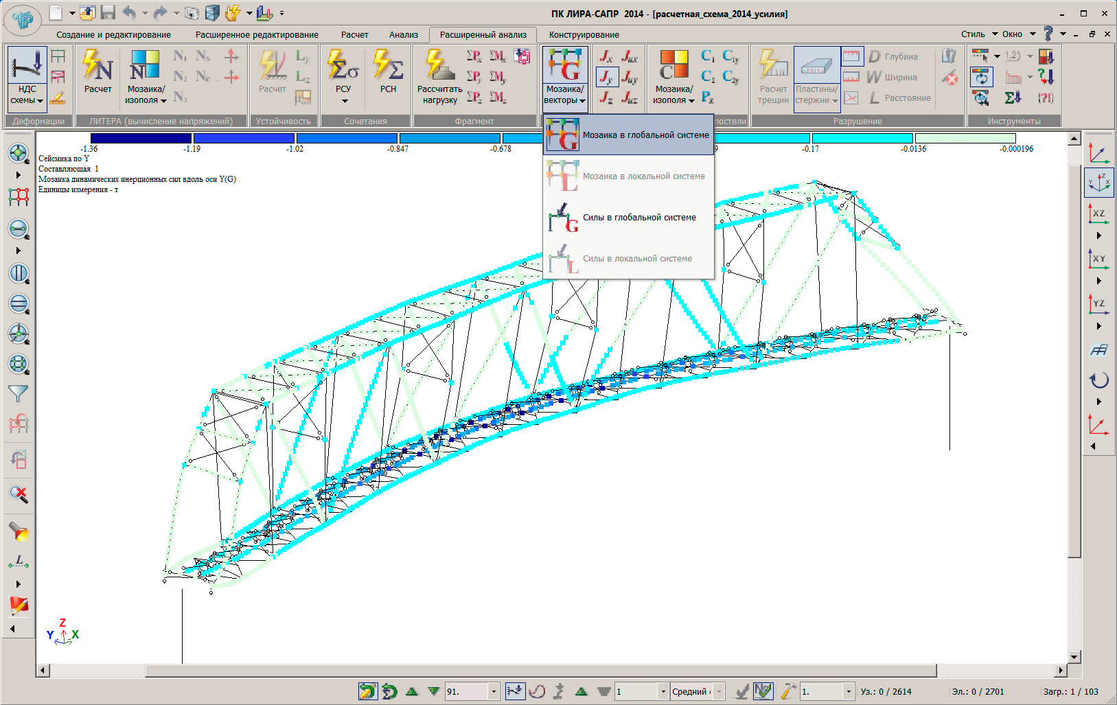 • добавлена визуализация результатов расчета нагрузок на фрагмент и инерционных нагрузок в виде мозаик; для задач с суперэлементами улучшено отображение значений нагрузок на фрагмент внутри развернутых суперэлементов;