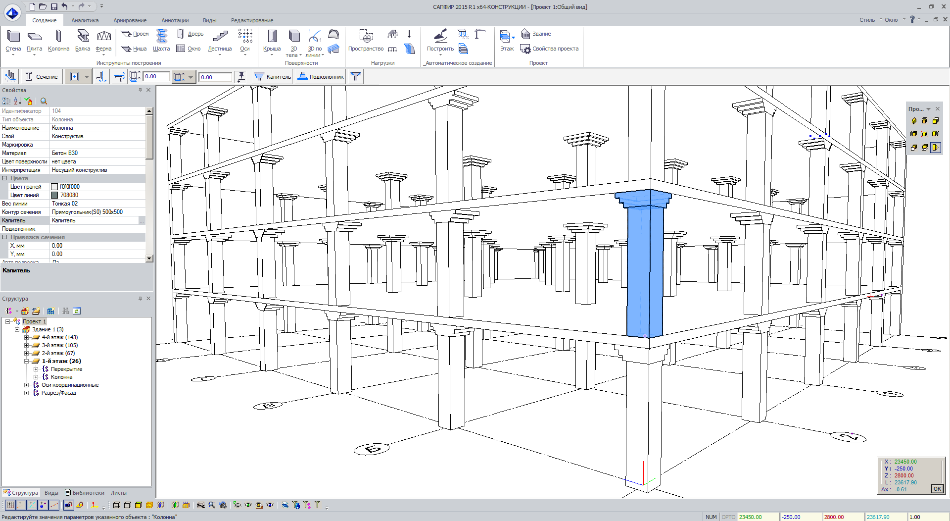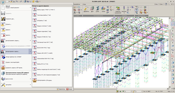Для импорта из Revit Structure (используя формат *.lirakm) реализовано восстановление физической модели (плит и колонн) из элементов аналитической модели (пластин и стержней).