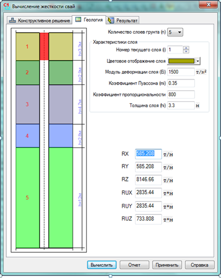 Реализован диалог для задания конечных элементов свая с учетом прилегающих слоев грунта