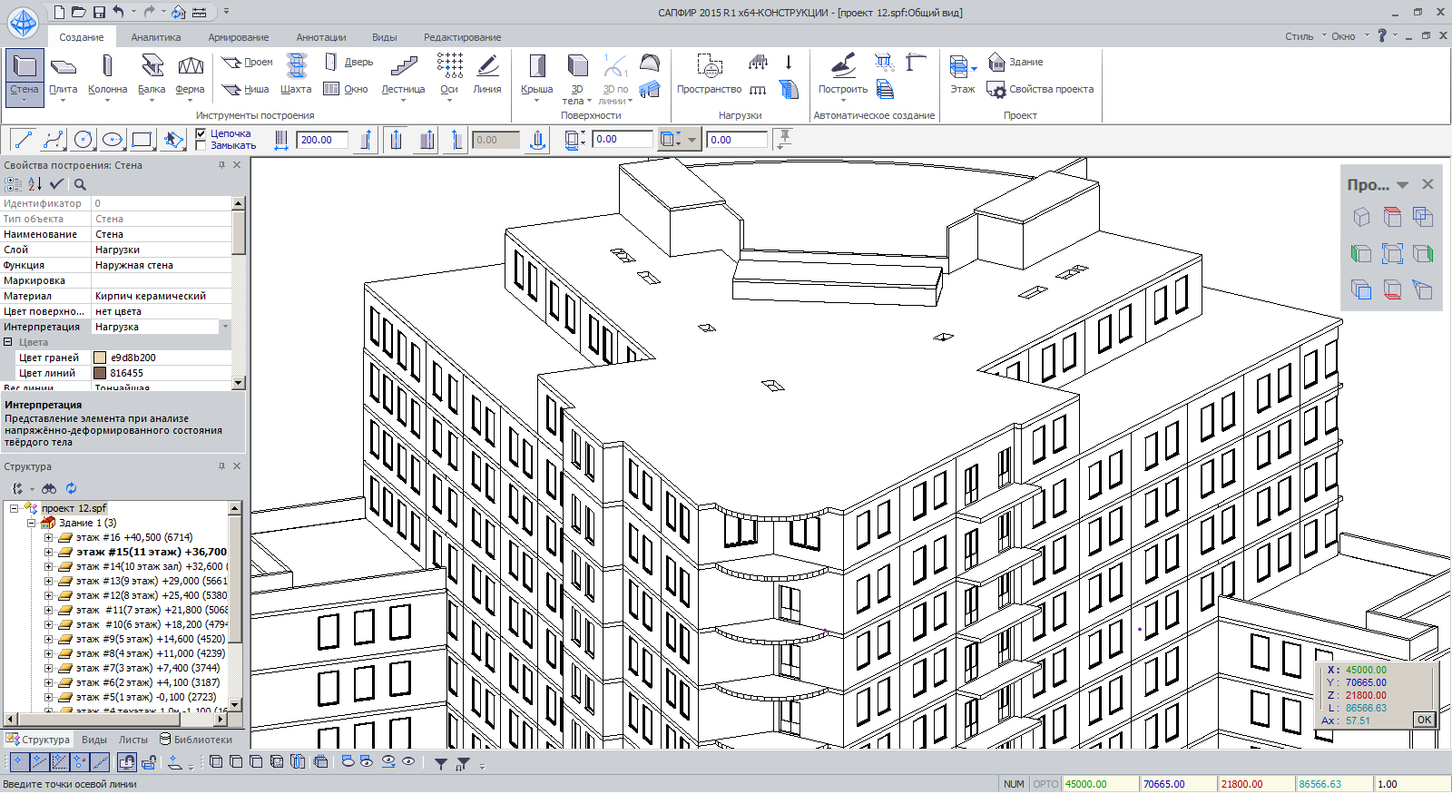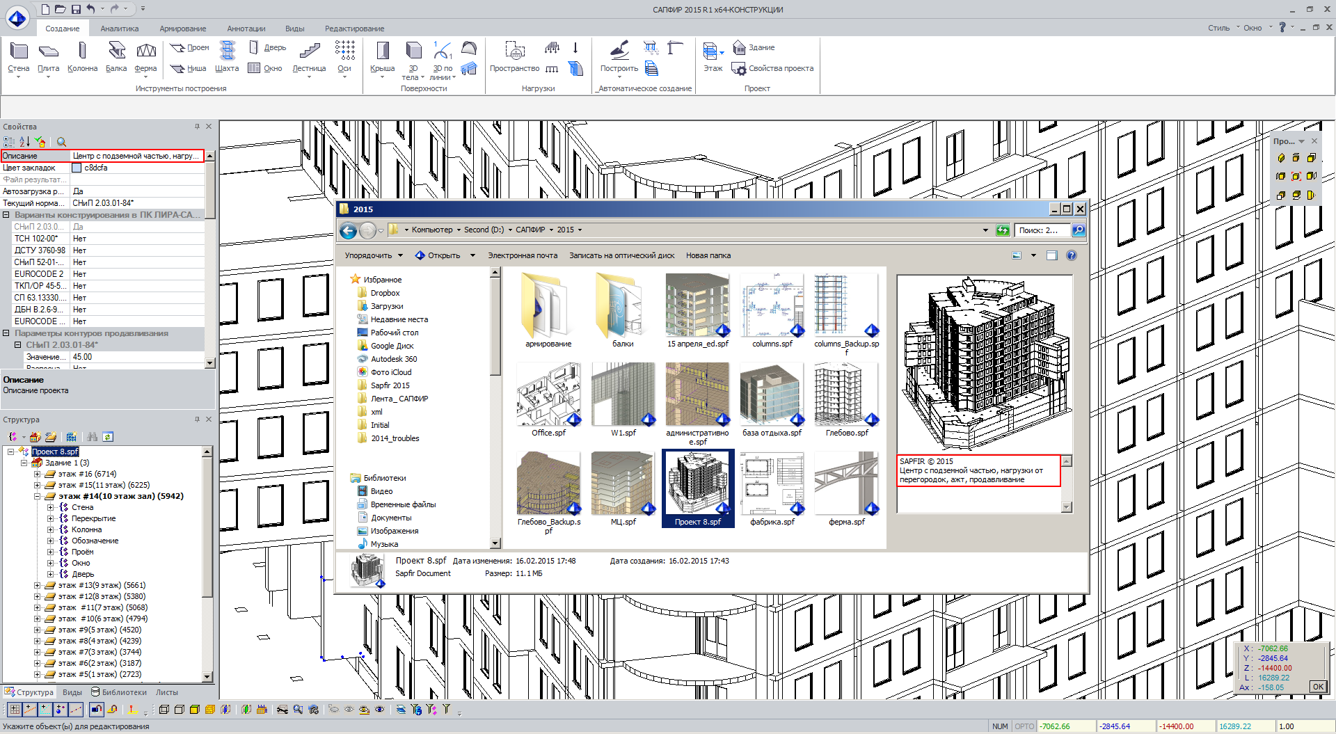 Предусмотрено сохранение проектов в формате *.spf для предыдущих версий программы (САПФИР 2014, САПФИР 2013.)