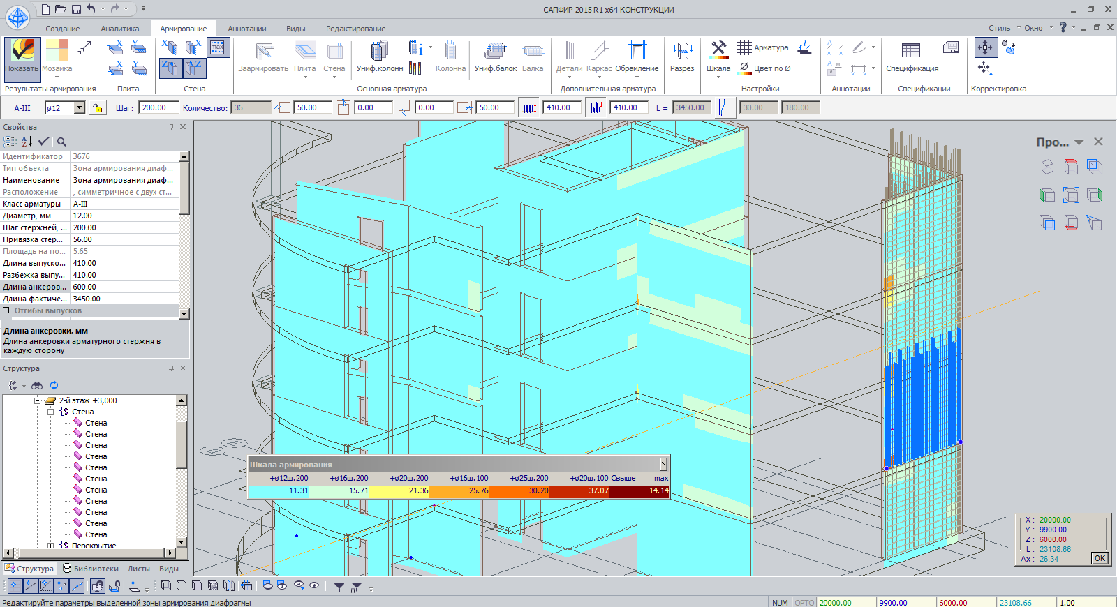 Отображение шкалы армирования в произвольном месте графической области на любом виде, в том числе и в 3D.