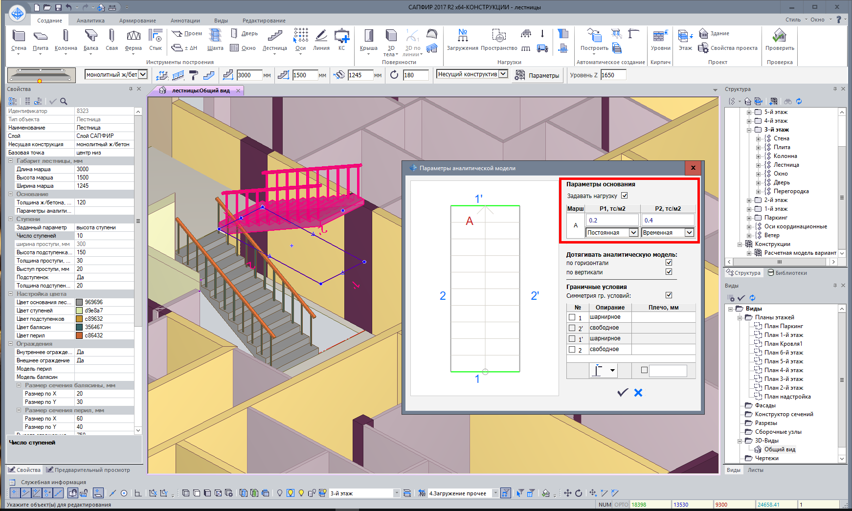 • Решены проблемы при работе с нагрузками: редактирование нагрузки-штампа, суммирование нагрузки на плиту с собственным весом, приложение нагрузок от перегородок к уровню своего этажа.