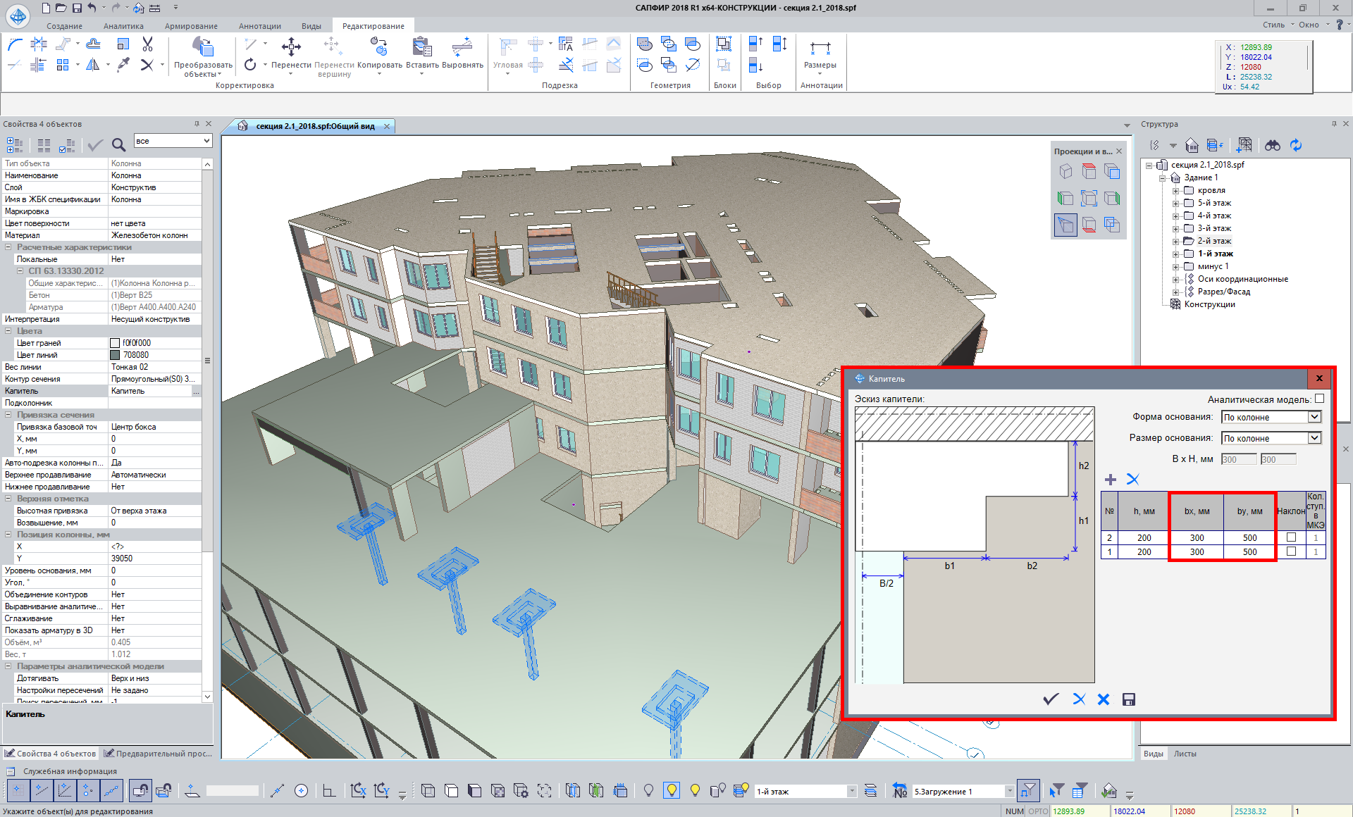 Увеличено быстродействие системы во время построения при работе с большим количеством объектов (порядка 5000). В САПФИР 2017 и более ранних версиях программы при работе с большими моделями нельзя было завершить построение объектов пока не произойдет обновление Структуры проекта. В версии 2018 эта операция выведена в параллельный процесс и построение объектов теперь не зависит от обновления Структуры проекта.