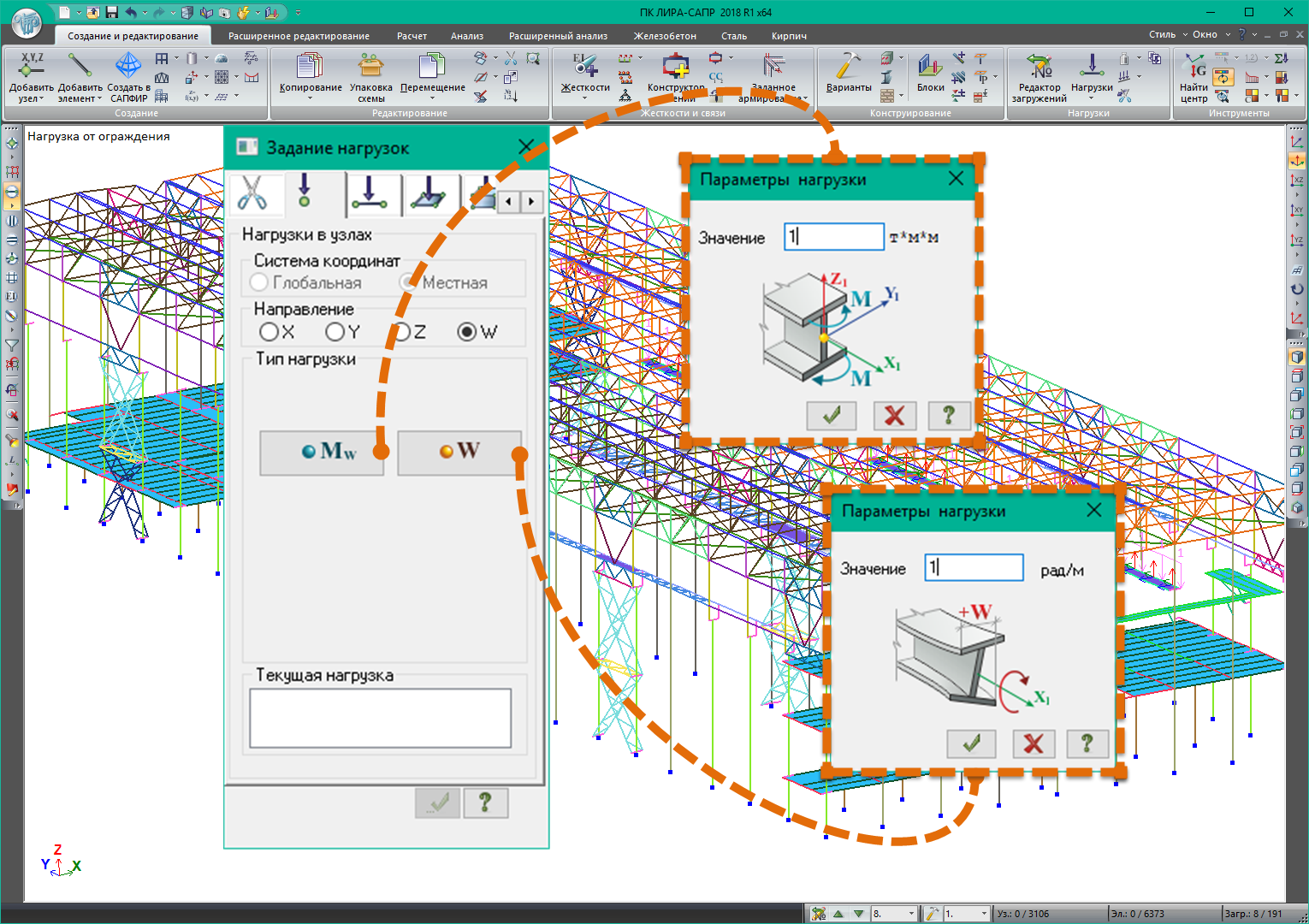 Введены новые виды нагрузок: сосредоточенный бимомент в узле и на стержне, равномерно распределенный бимомент на стержне, заданная депланация поперечного сечения.