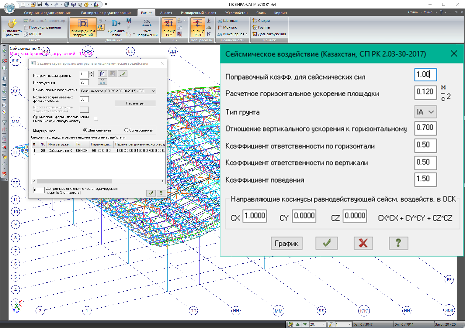 - модуль расчета на сейсмические воздействия в соответствии с нормами Кыргызской Республики СНиП КР 20-02:2017 «Сейсмостойкое строительство».