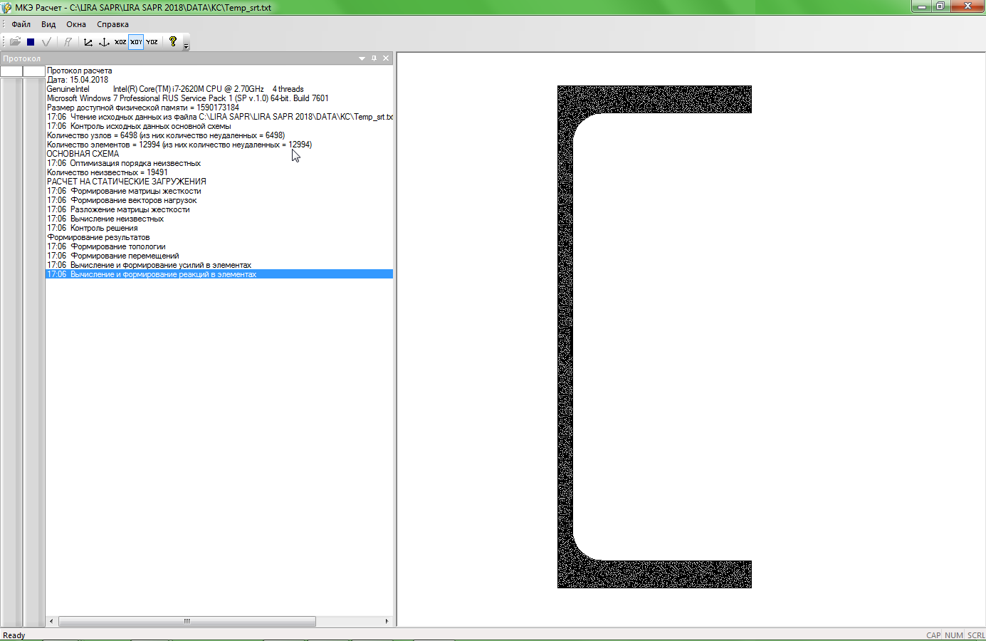 Реализована возможность отображения расчетных схем на основе технологии Direct3D. Технология привлекает собственную память видеокарты. Разработаны оптимизированные алгоритмы построения изображений для быстрой и высококачественной визуализации большеразмерных расчетных схем. Просмотр и вращение схемы, содержащей несколько миллионов элементов осуществляется в режиме реального времени. При этом уменьшается вычислительная нагрузка на центральный процессор и освобождаются дополнительные ресурсы для выполнения различных операций с исходными данными и результатами расчета, что делает работу в среде ПК ЛИРА-САПР более комфортной.