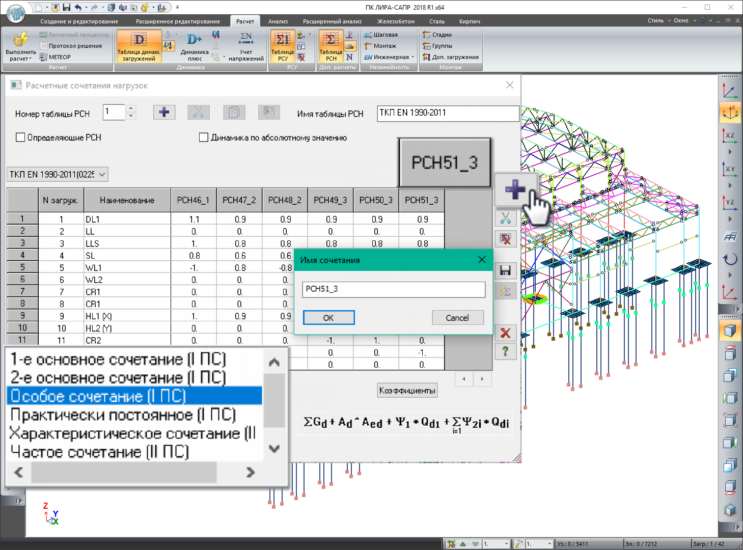 Для норм на основе Eurocode добавлена возможность формирования пользовательских сочетаний, с возможностью выбора принадлежности сочетания, например, к характеристическому сочетанию, частому сочетанию, 1-му основному и т.д.