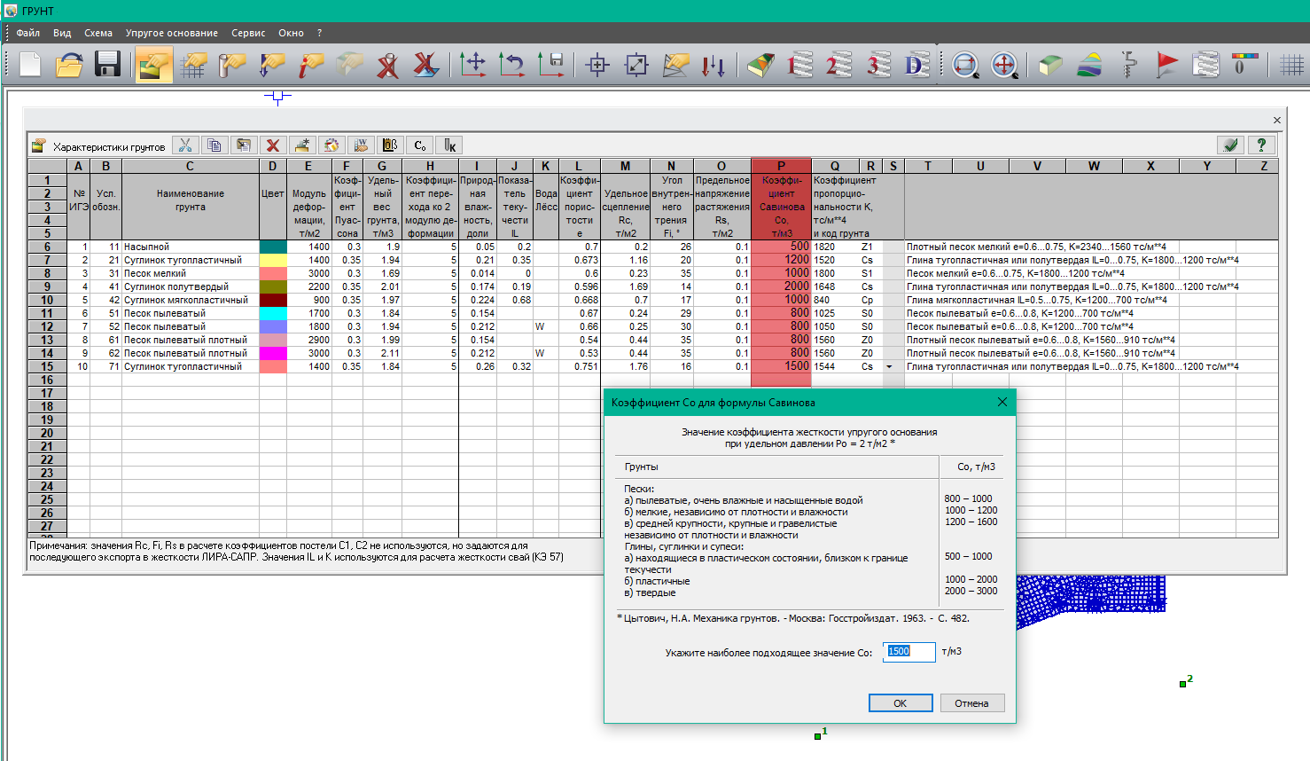 Для выполнения расчета в таблицу характеристик грунтов добавлен новый параметр – константа упругости С0