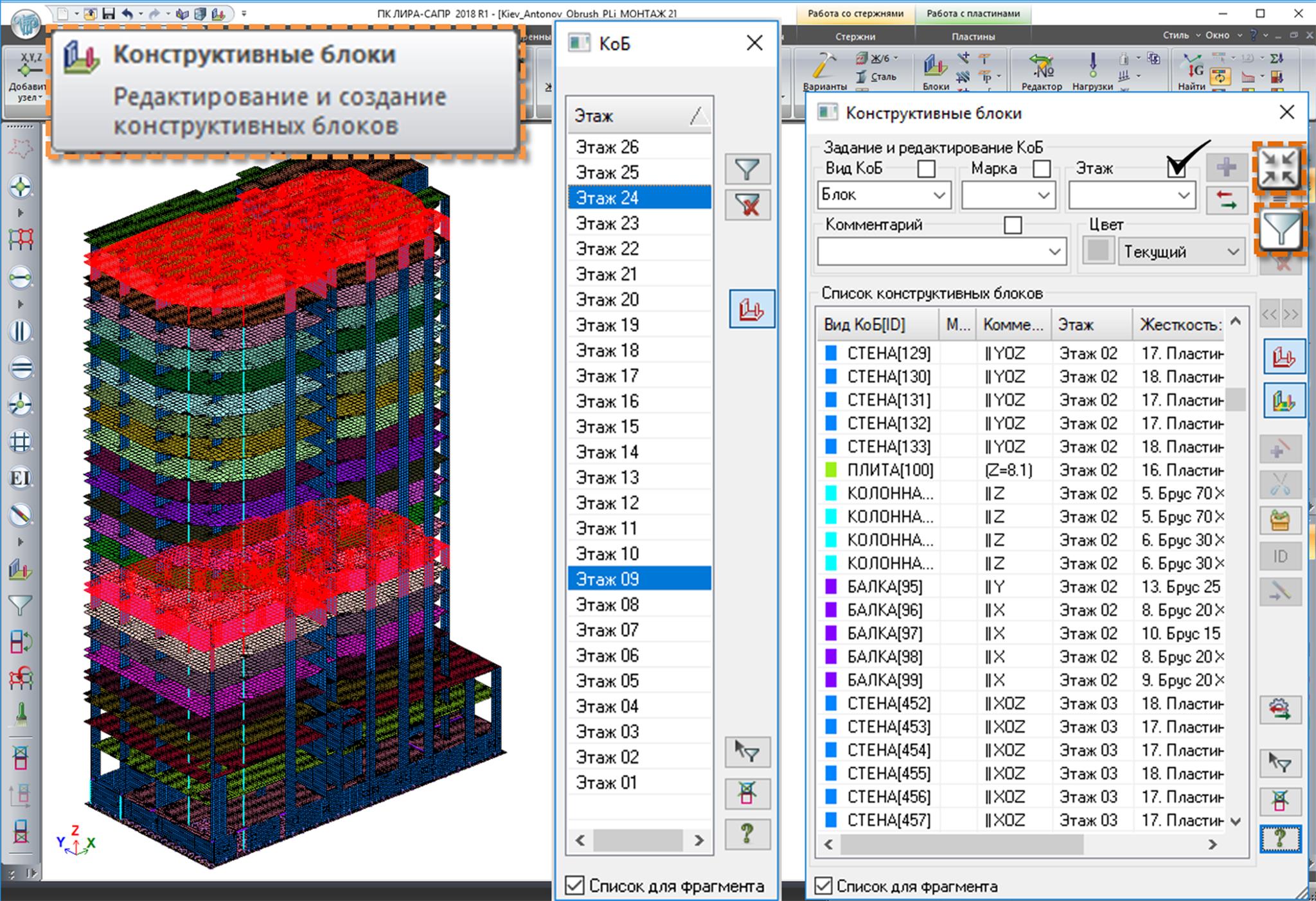 Разработанная ранее система Панельные здания, позволяющая в удобном для пользователя режиме создавать расчетные схемы, рассчитывать и анализировать результаты расчета в ПК ЛИРА-САПР 2017 усовершенствована новыми возможностями: