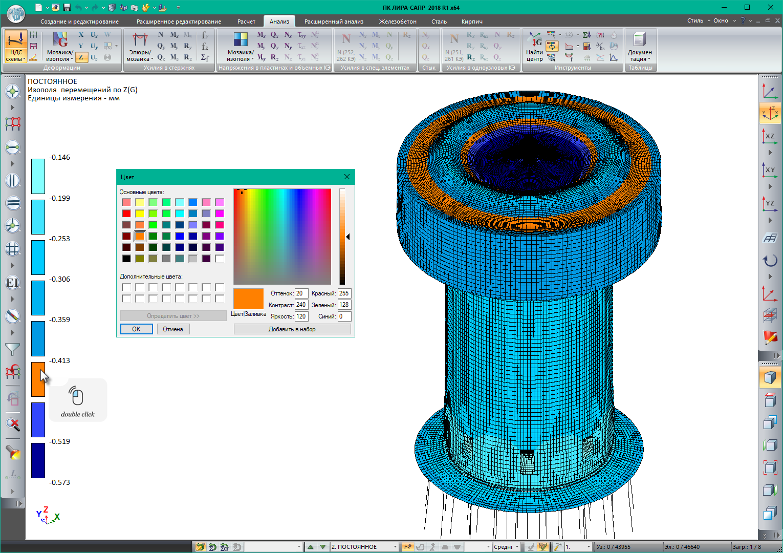 Добавлена возможность интерактивного редактирования цветов диапазонов для текущей шкалы изополей и мозаик. Добавлен режим редактирования цветовых палитр для шкал армирования (количество диапазонов увеличено до 32).