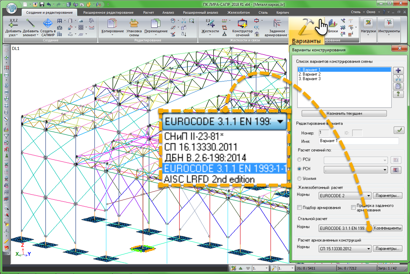 С перечнем реализуемых нормативов можно познакомиться в статье: Нормативы EuroCode в ПК ЛИРА-САПР 2018