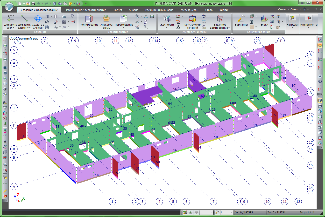 Разработано автоматическое выравнивание модели (стен, плит, колонн, балок, осей), которое идеализирует модель, выравнивает объекты по осям и приводит координаты всех элементов к единому модулю.