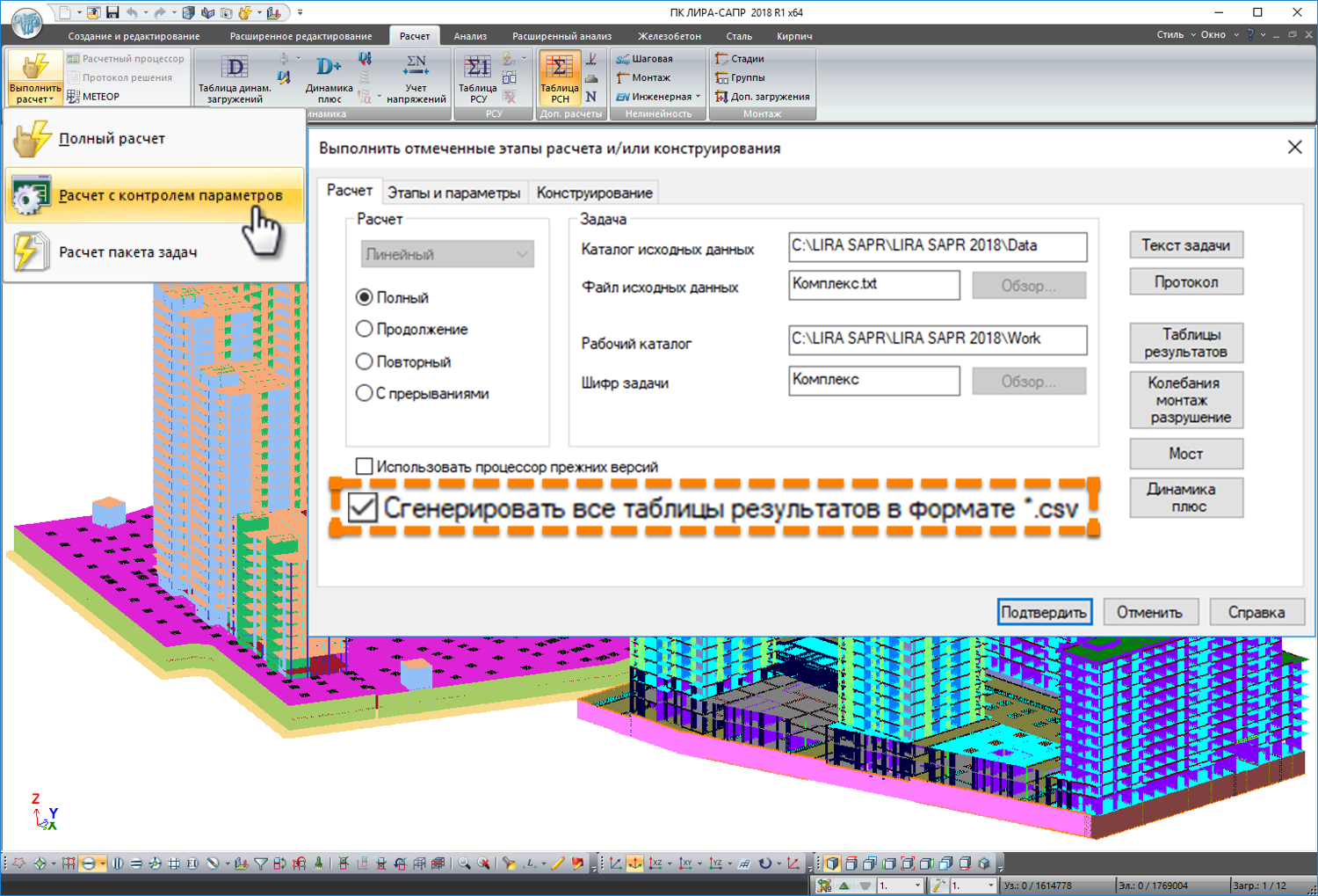 Добавлена возможность настройки автоматической записи таблиц исходных данных и результатов расчета в формате *.csv