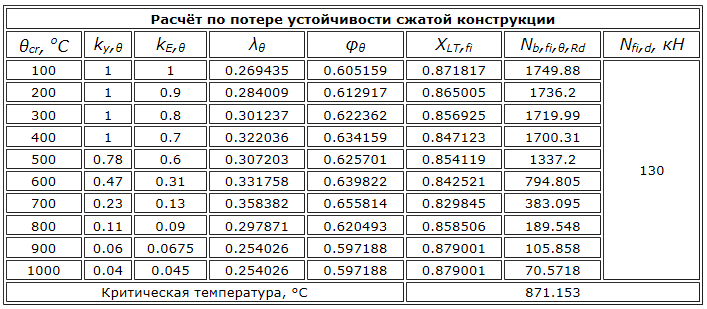 Критическая температура определяется для заданного/подобранного сечения в соответствии с Еврокодом 3, раздел 1-2 (Расчет конструкций на огнестойкость).
