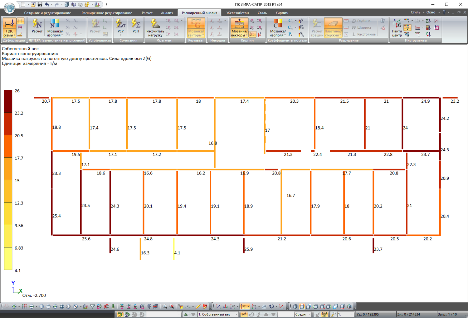 Реализован новый вид представления нагрузки на простенки, который позволяют решить проблему сбора линейных нагрузок на обрез фундамента.