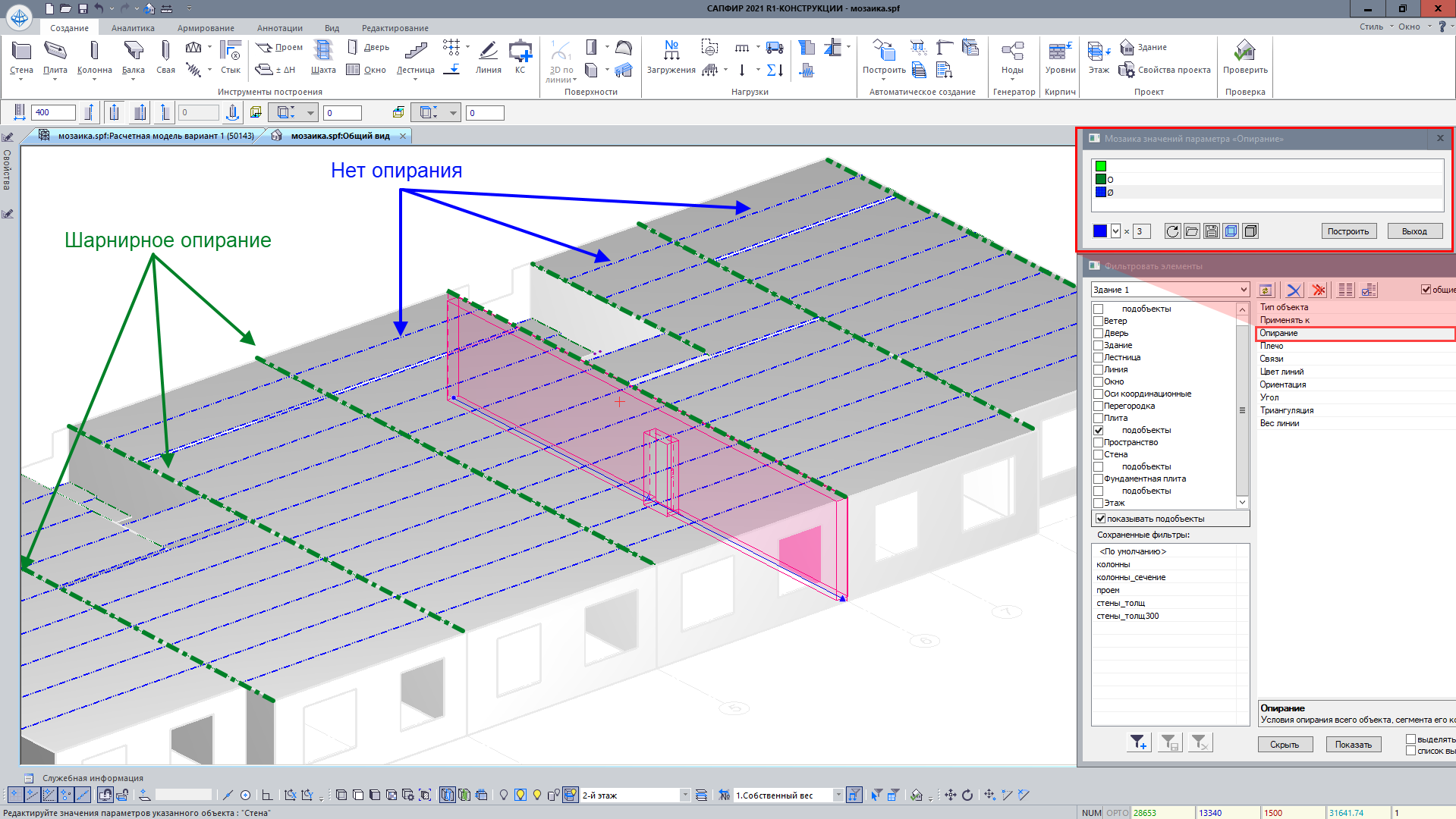 • Создан режим автоматической раскладки участков дополнительного армирования для плиты перекрытия. Участки дополнительного армирования устанавливаются на основе цветовых зон мозаики армирования.