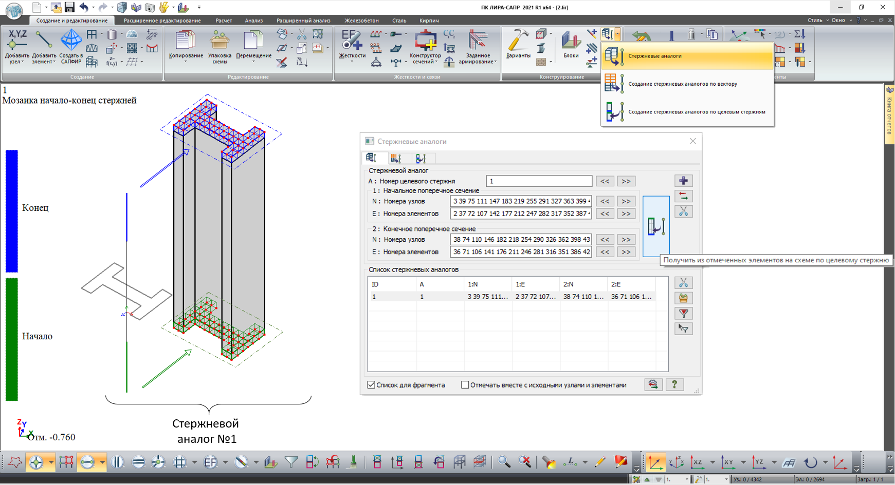 Стержневые аналоги, получить из отмеченных элементов (фрагмент контекстной справки)