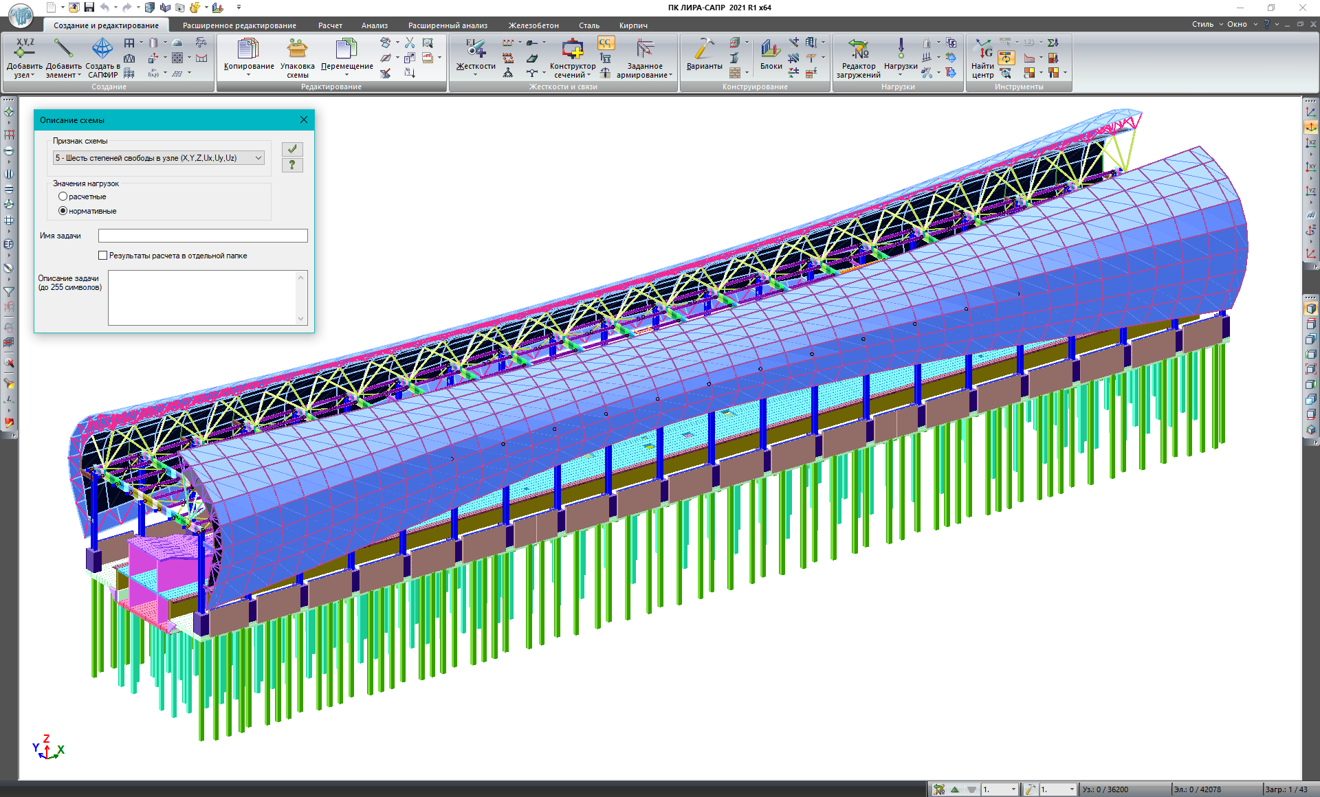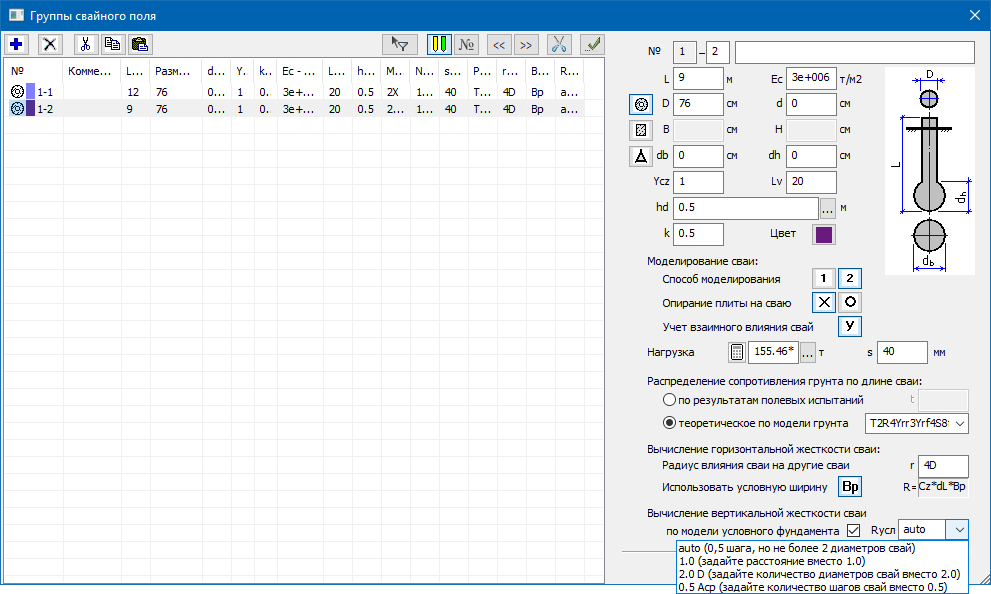 • Добавлена возможность вычисления жесткости КЭ 57 (свая) по модели условного фундамента;