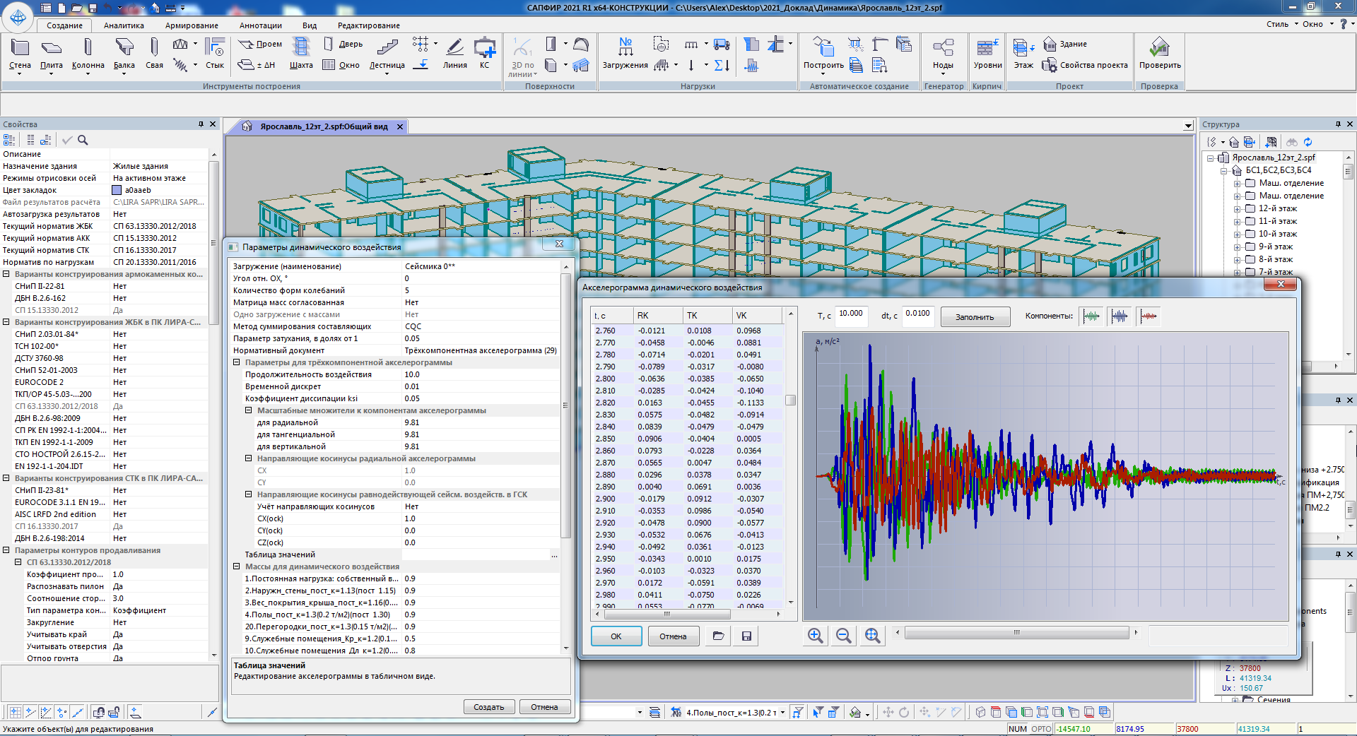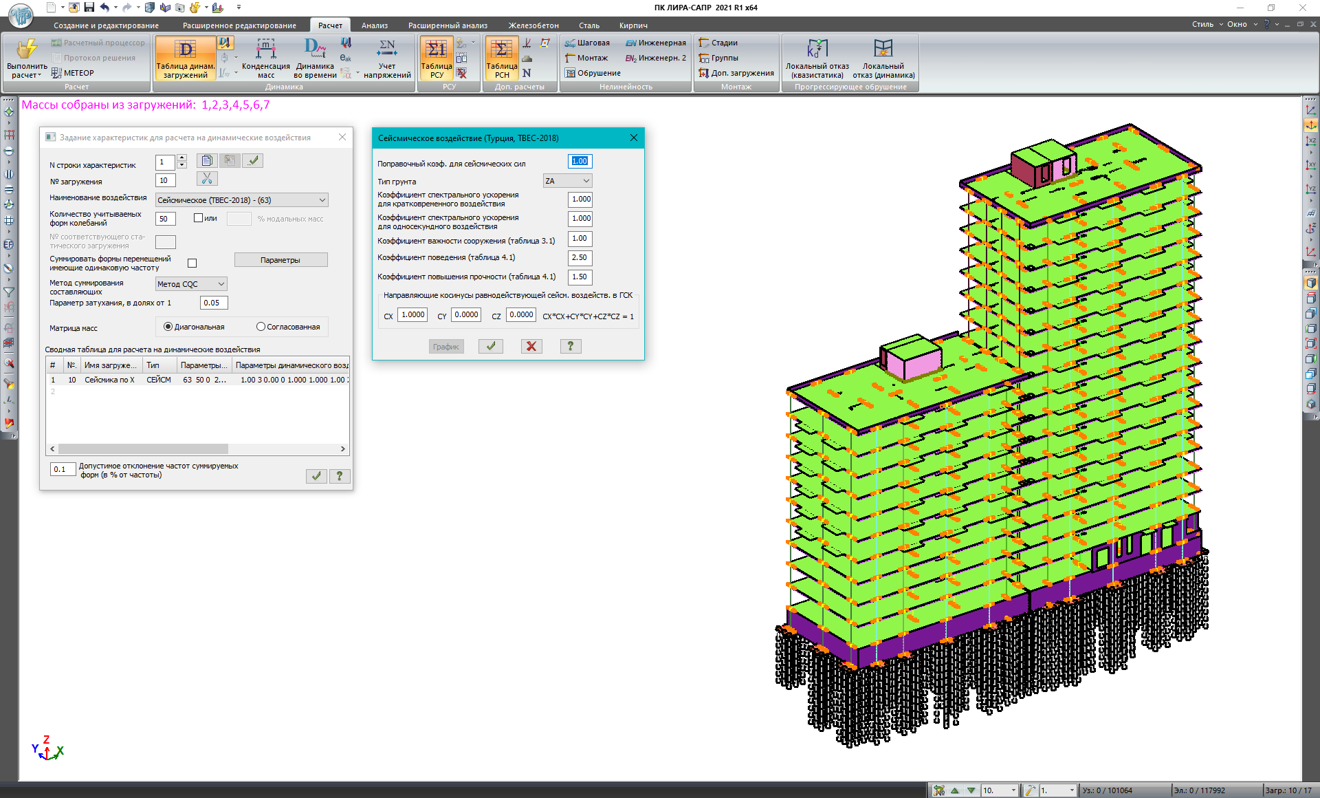 • Реализован новый модуль динамики (64) - трехкомпонентный ответ-спектр.