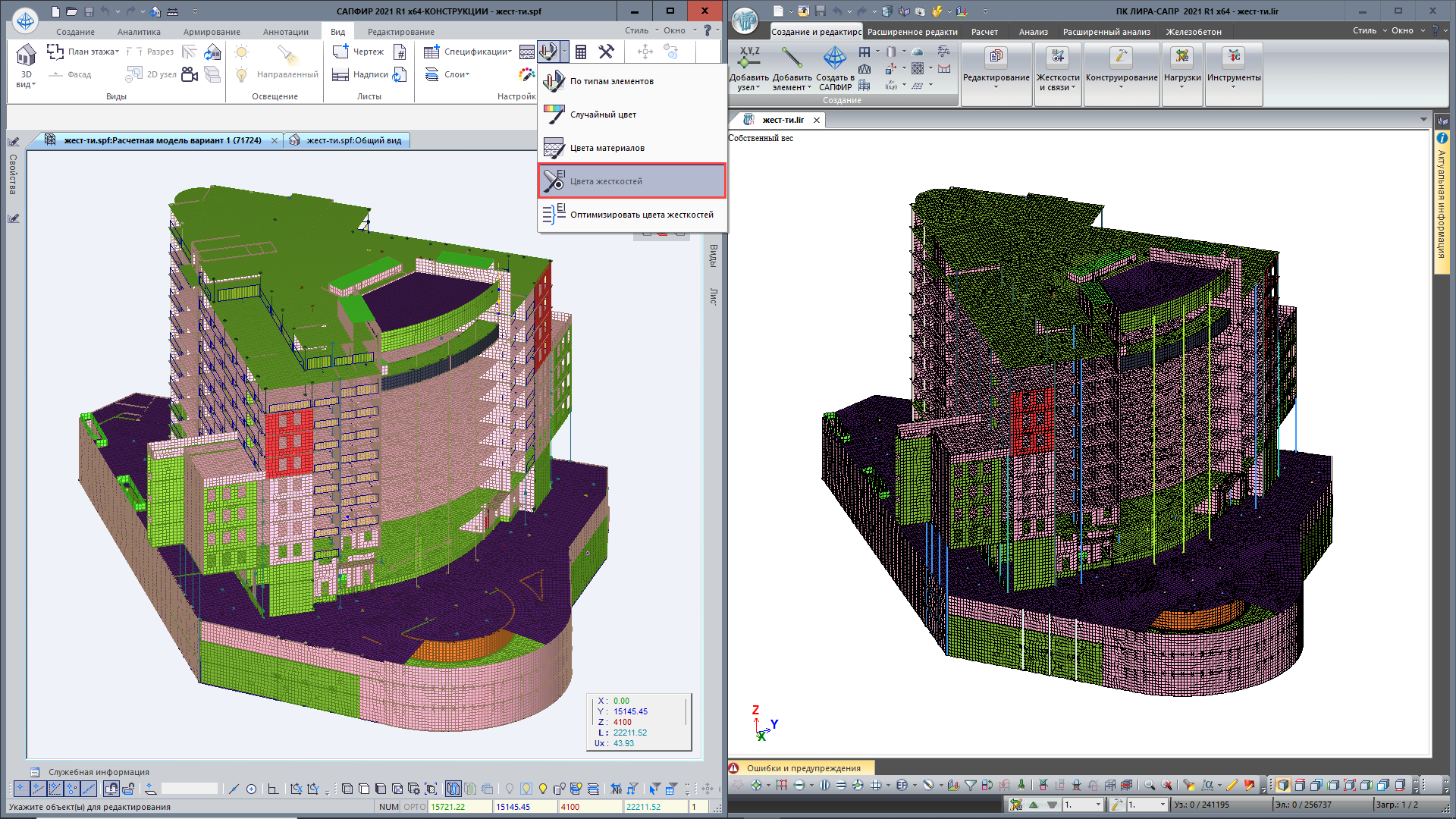 • Для импорта модели из Revit или Tekla одновременно через IFC и LiraKM файлы создана опция “Подстроить физическую модель под аналитическую”, которая позволяет разместить аналитическую модель Revit в пределах физической модели САПФИР, а также распознать стальные сечения колонн и балок в физической модели САПФИР.