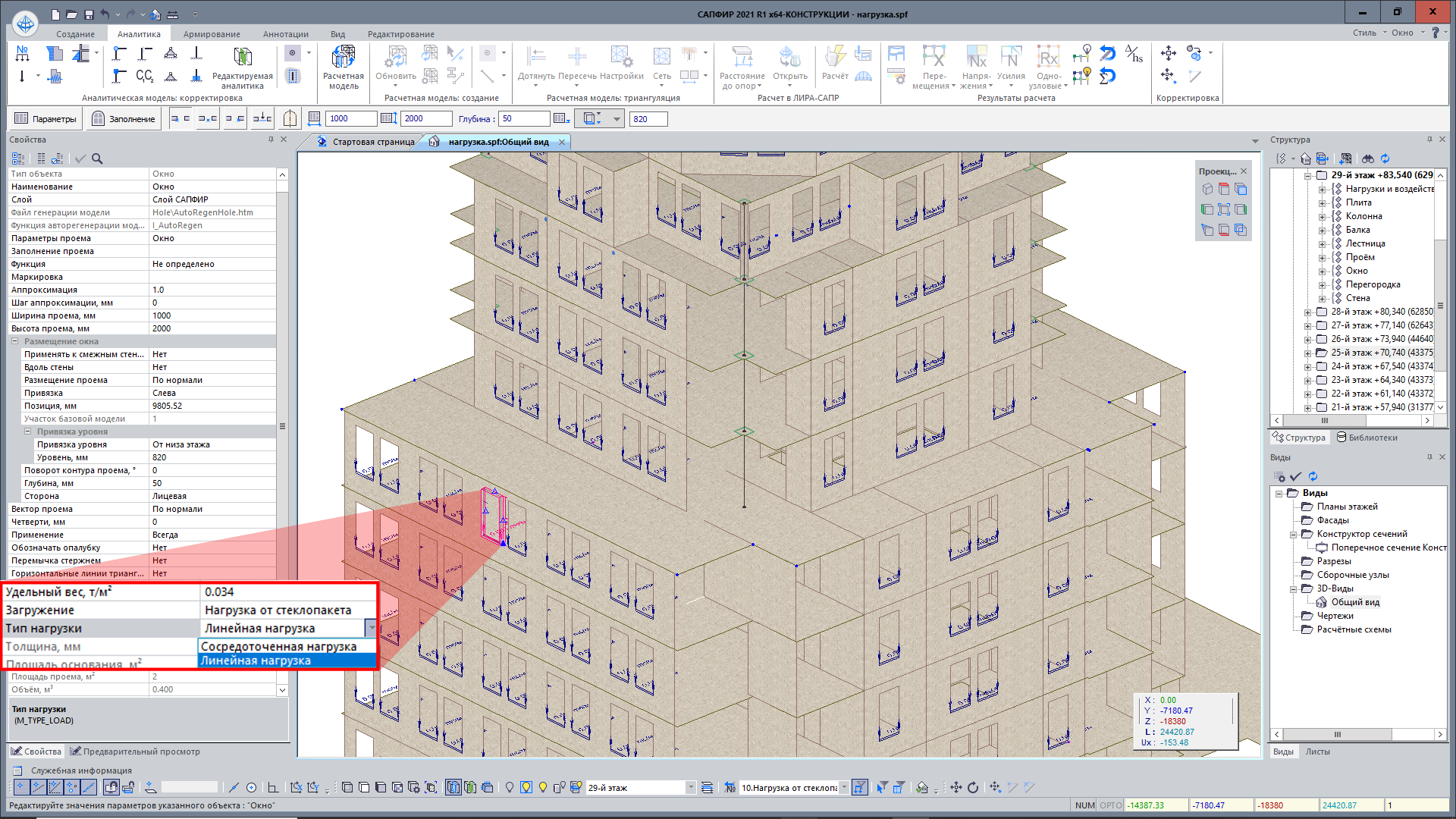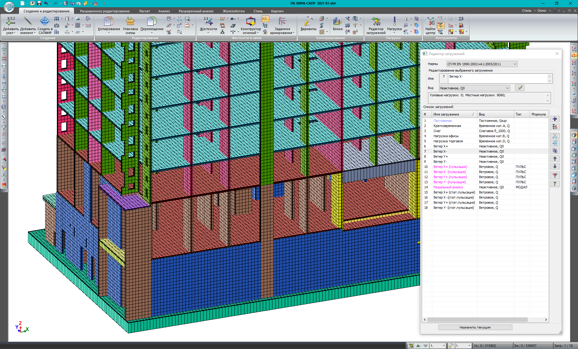 • В редакторе загружений добавлена возможность работать с видами нагрузок в соответствии с действующими нормами РК.