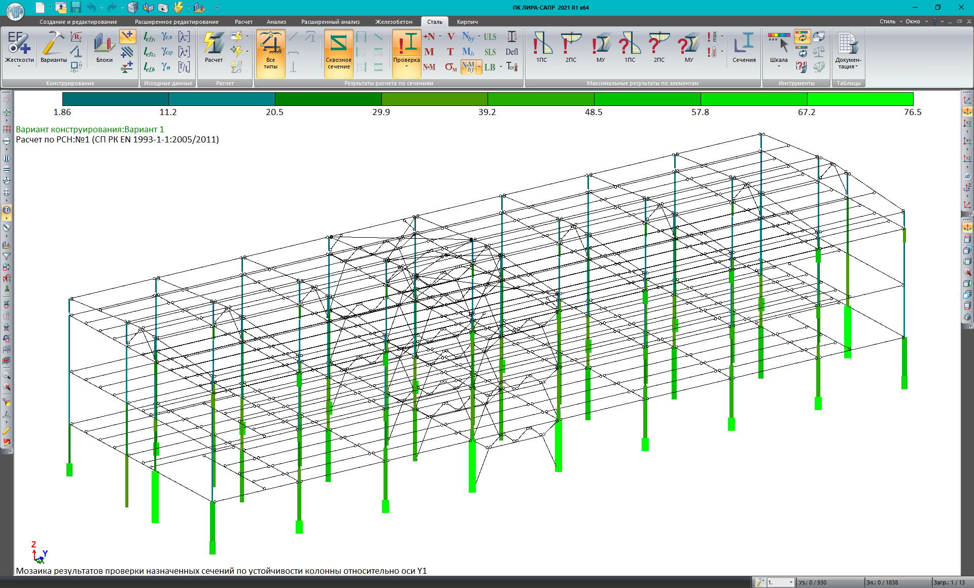 • Результаты проверки стальных сечений для норм СП РК EN 1993-1-1