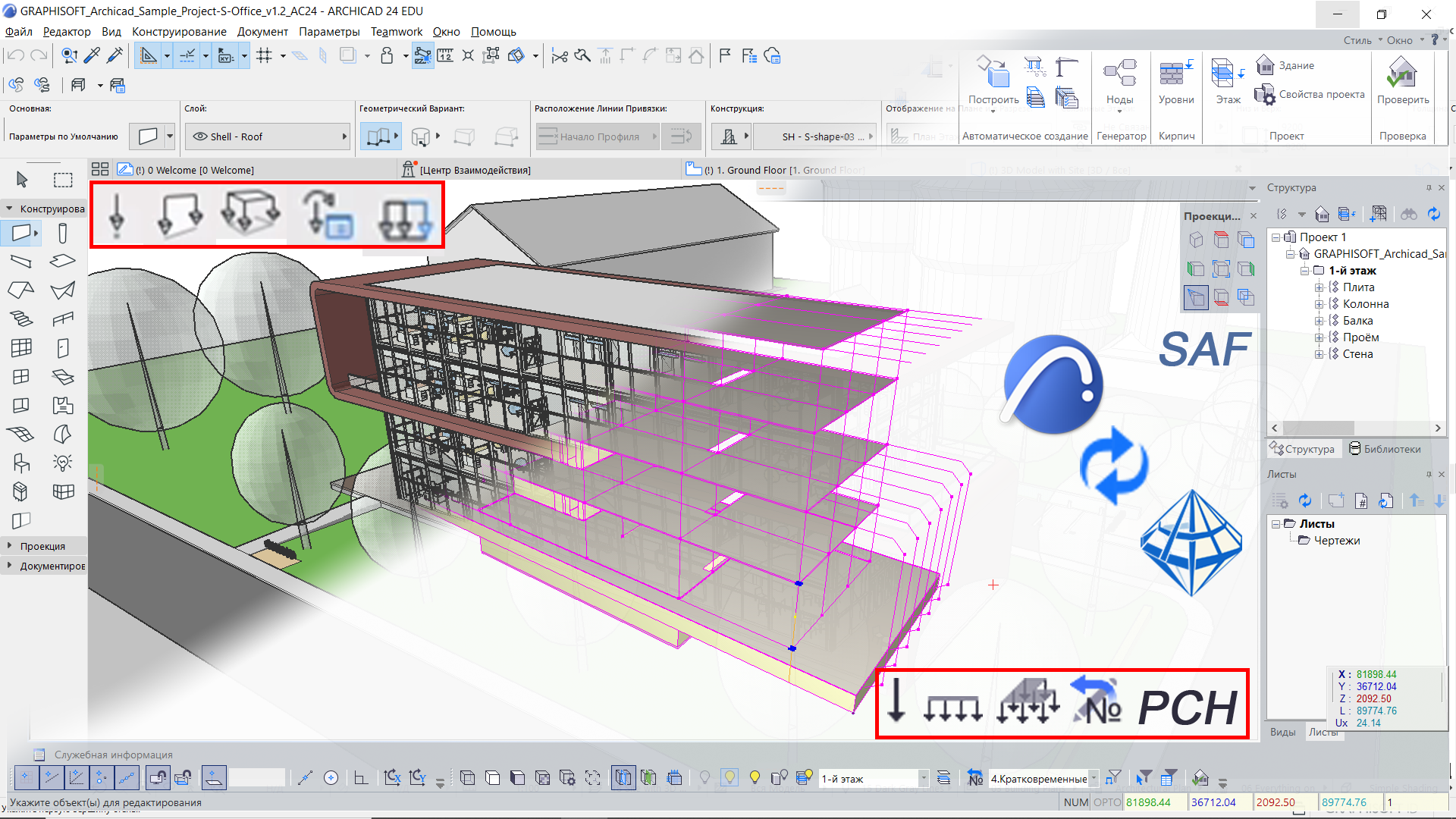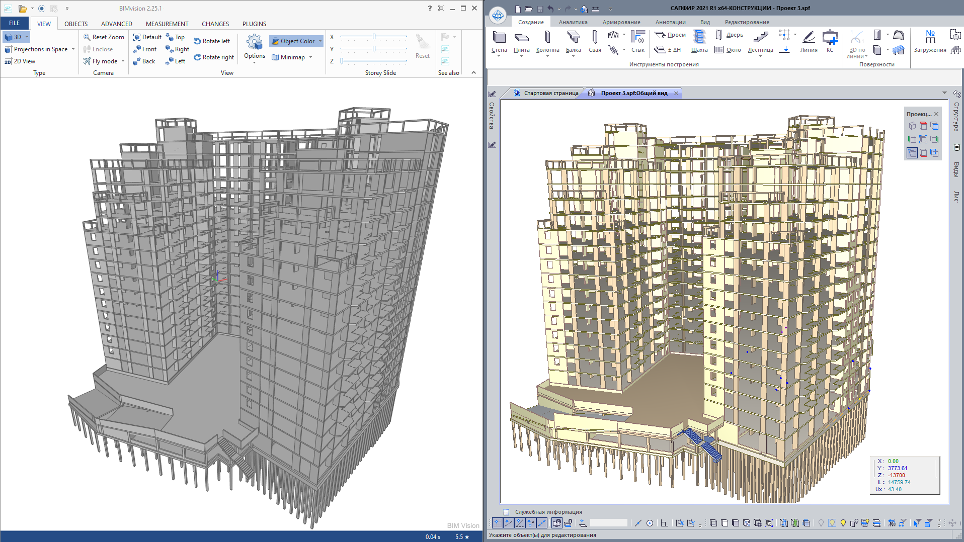 • при импорте новое здание добавляется на слой, соответствующий наименованию файла IFC (таким образом можно удобно скрывать/отображать секции (здания), если модель состоит из нескольких секций, размещенных в одном проекте).