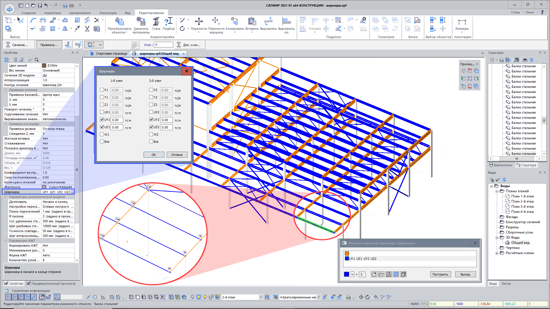 • Реализован новый способ создания стержневых аналогов, который позволяет из набора отмеченных на схеме элементов выполнить привязку элементов и узлов для начального и конечного поперечного сечения целевого стержня.