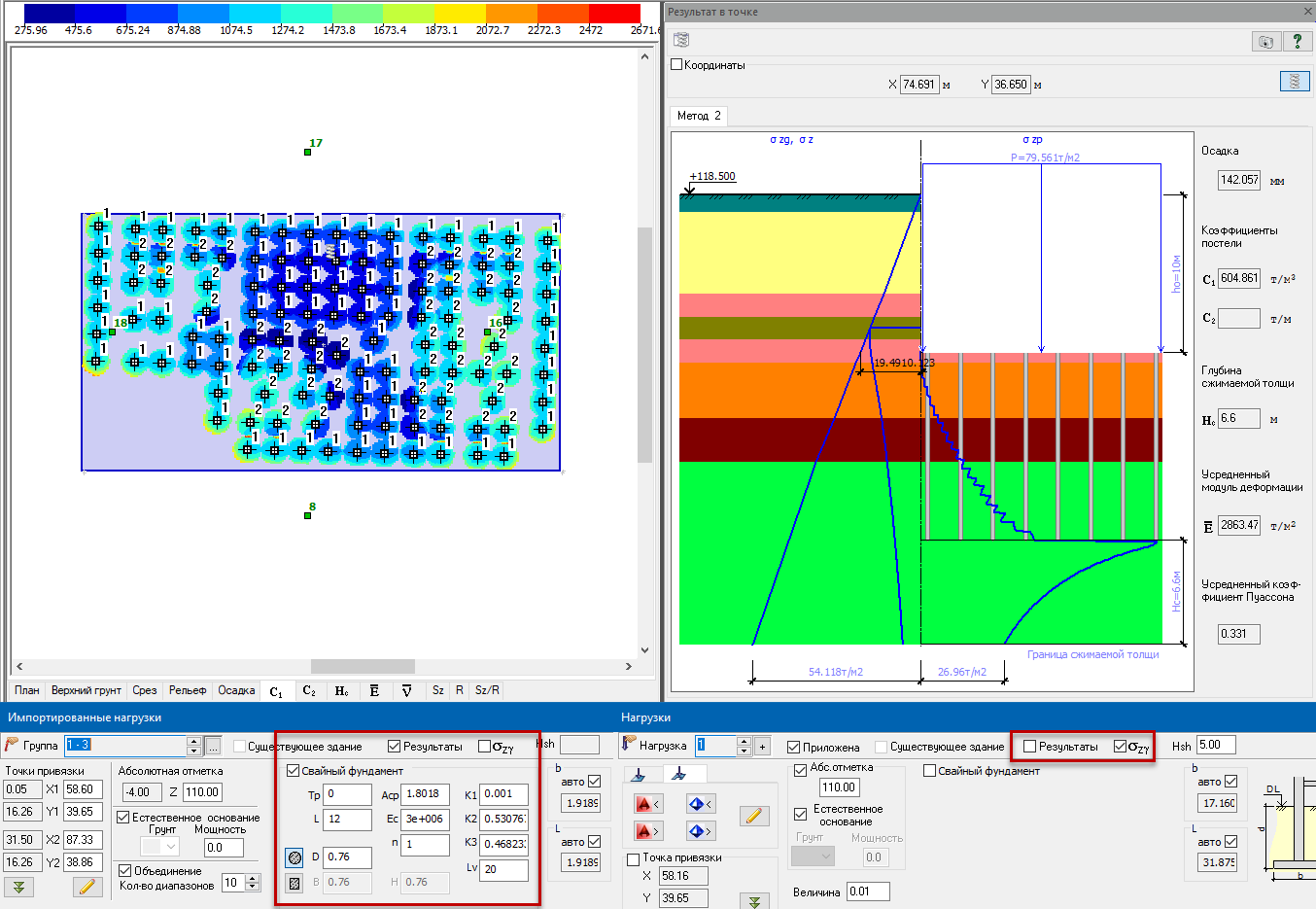 • Для норм СП 22.13330.2016 реализована возможность расчета осадок и получения коэффициентов постели для: