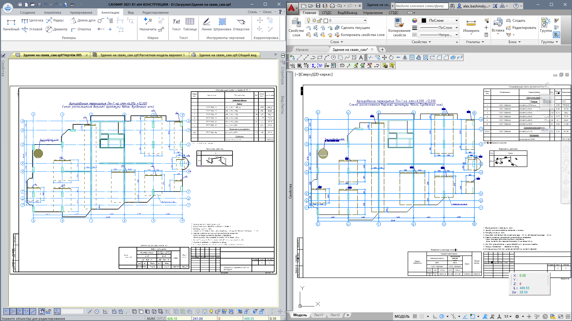 • Реализован экспорт чертежей в DWG формат. Чертеж, сформированный в программе САПФИР, будь то армирование колонны, опалубочный чертеж плиты перекрытия или план расположения элементов можно экспортировать в DWG формат.