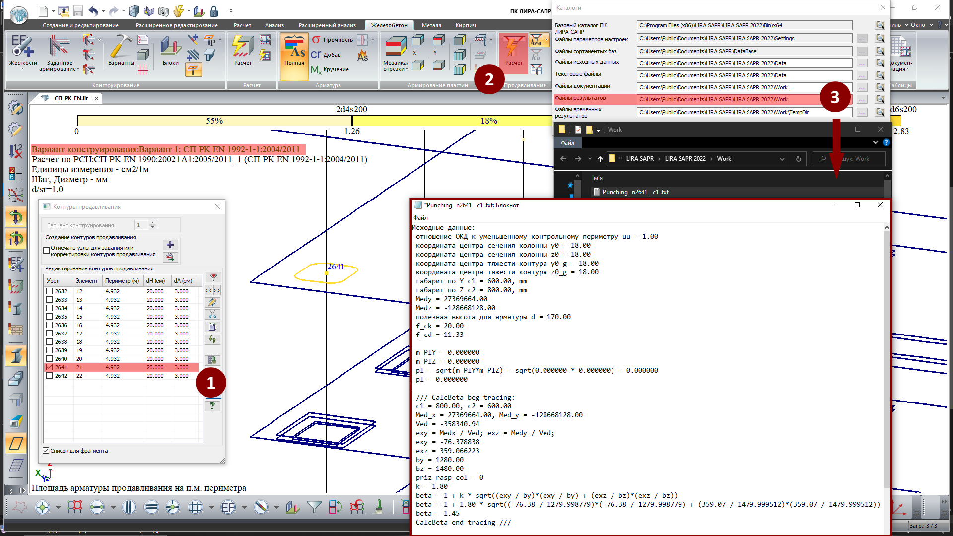 Добавлена возможность управления формированием трассировки расчета для указанных контуров продавливания для норм СП РК EN 1992-1-1:2004/2011 "Проектирование железобетонных конструкций".