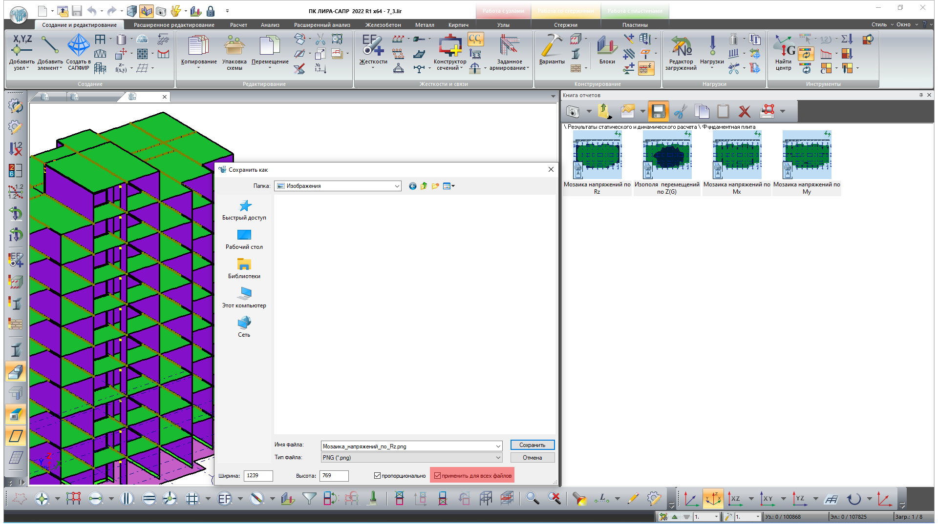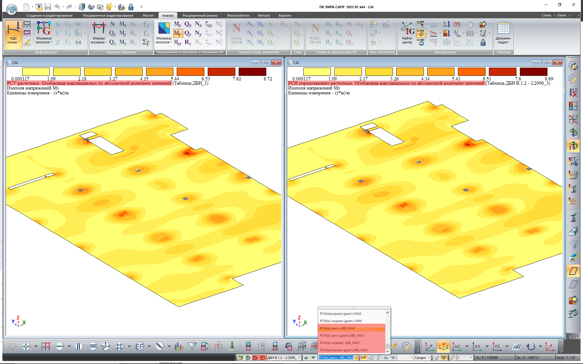 Добавлены мозаики результатов расчета железобетонных конструкций:
