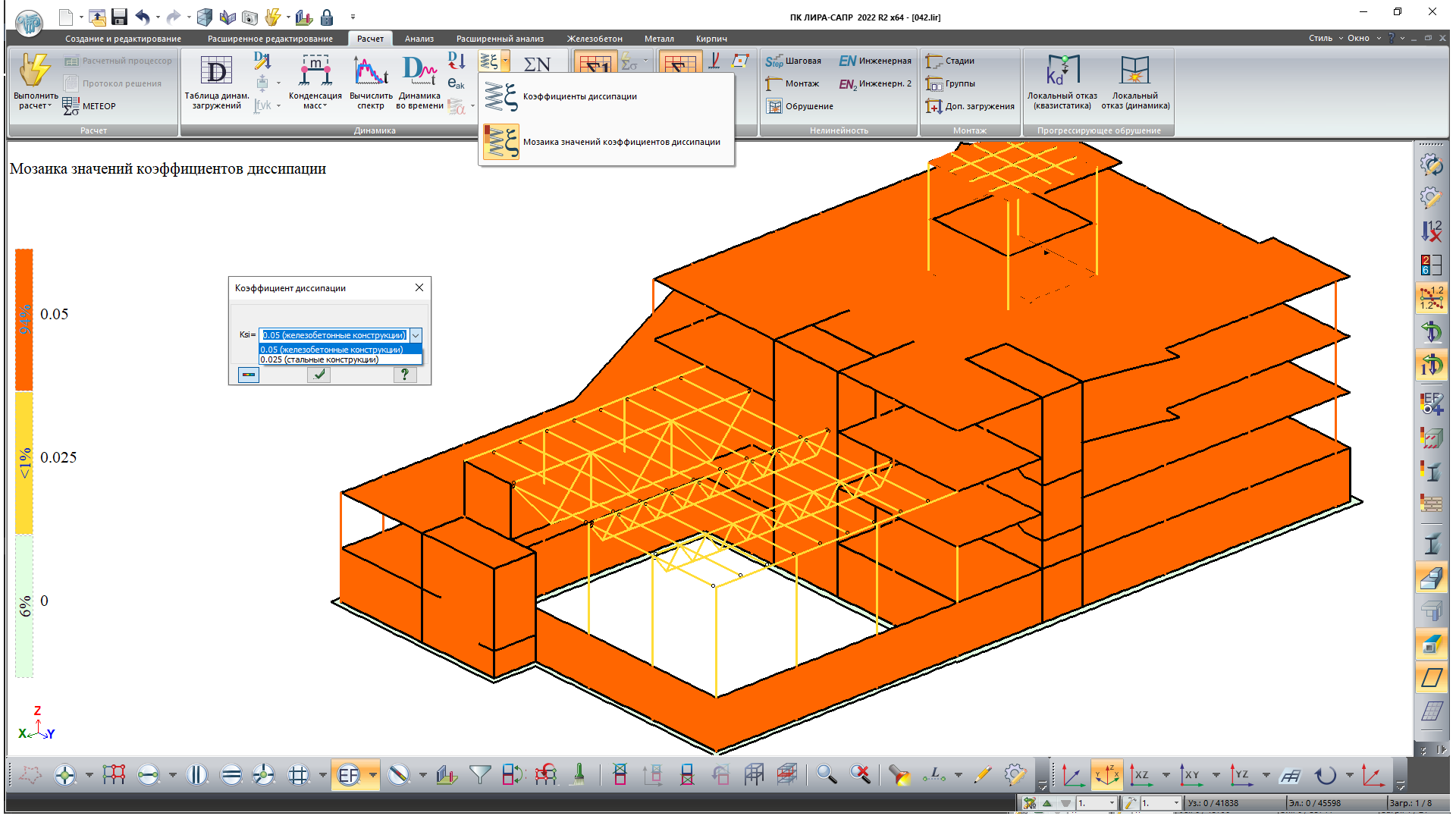 Разработан инструмент позволяющий выполнить назначение коэффициентов диссипации на элементы расчетной схемы, а также добавлена мозаика их визуализации.