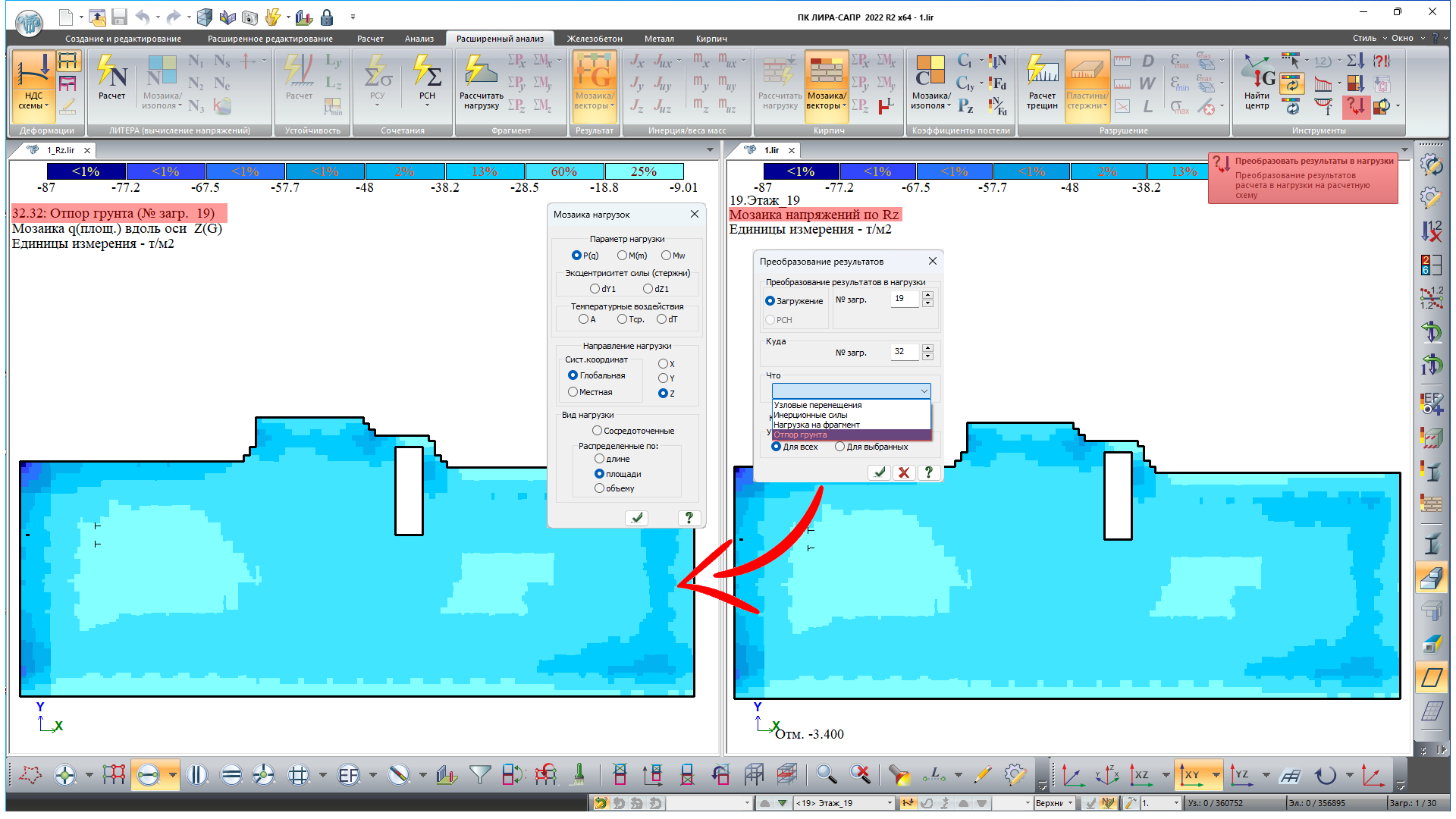 В первом релизе версии 2022 была добавлена возможность задавать параметры грунтовой подушки для отдельных подгрупп импортированных нагрузок, и теперь весь набор новых параметров также может быть применен отдельно для разных участков фундамента, которым назначены отдельные подгруппы Pz.