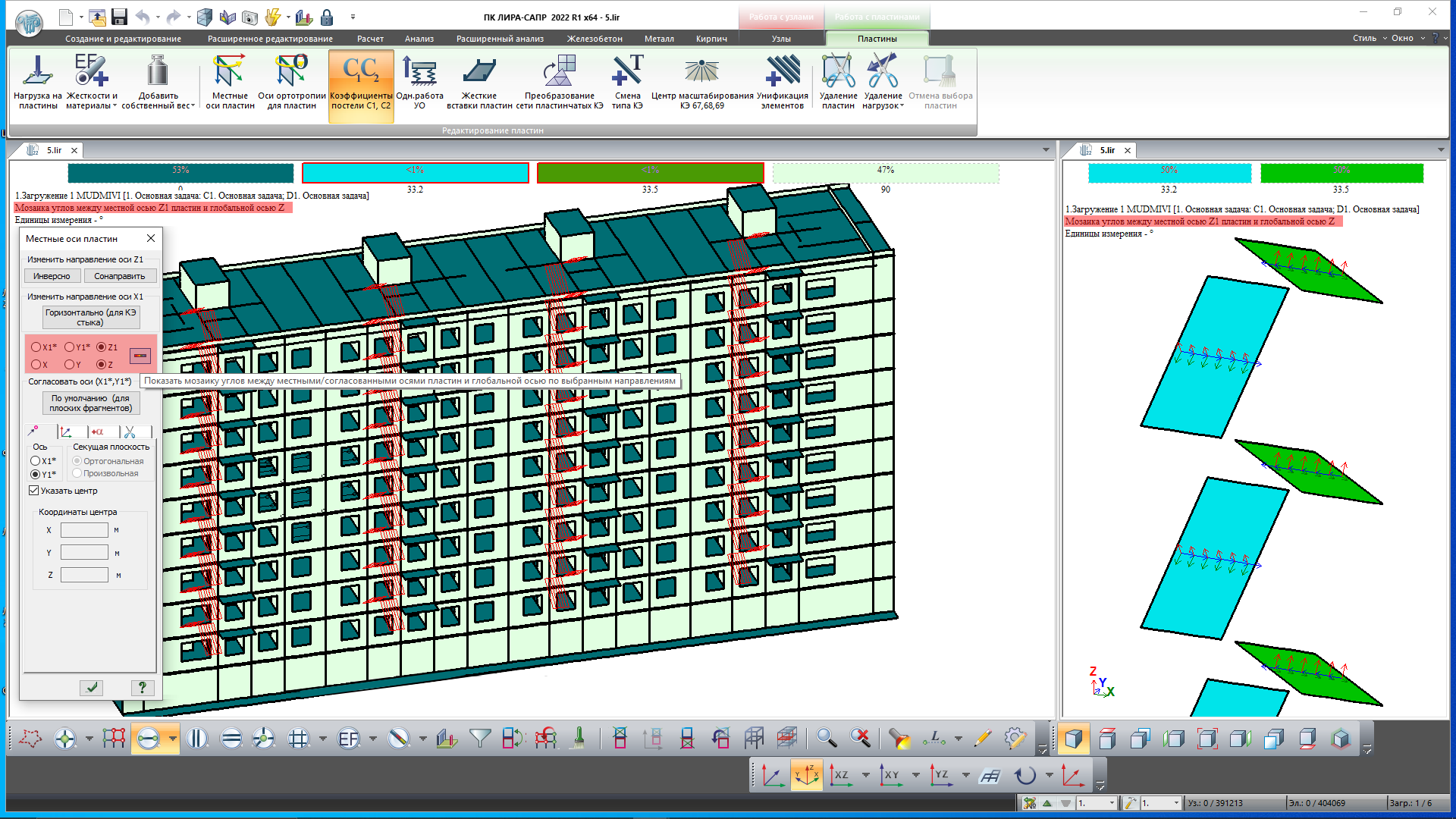 Для КЭ пластин для которых выполняется расчет С1/С2 с использованием системы “ГРУНТ”, добавлен контроль направления местных осей Z1 для того, чтобы исключить случаи когда положительный отпор Rz не передается в исходные данные для уточнения между итерациями.