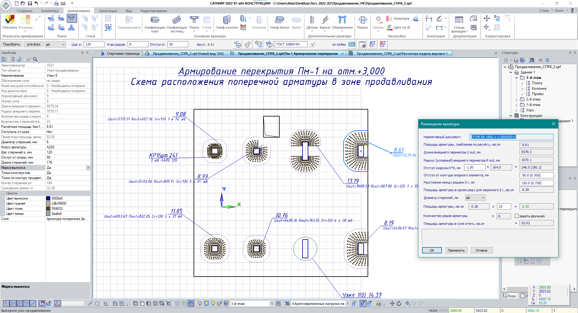 - Реализовано получение чертежей и узлов продавливания по нормам СП РК EN 1992-1-1:2004/201.