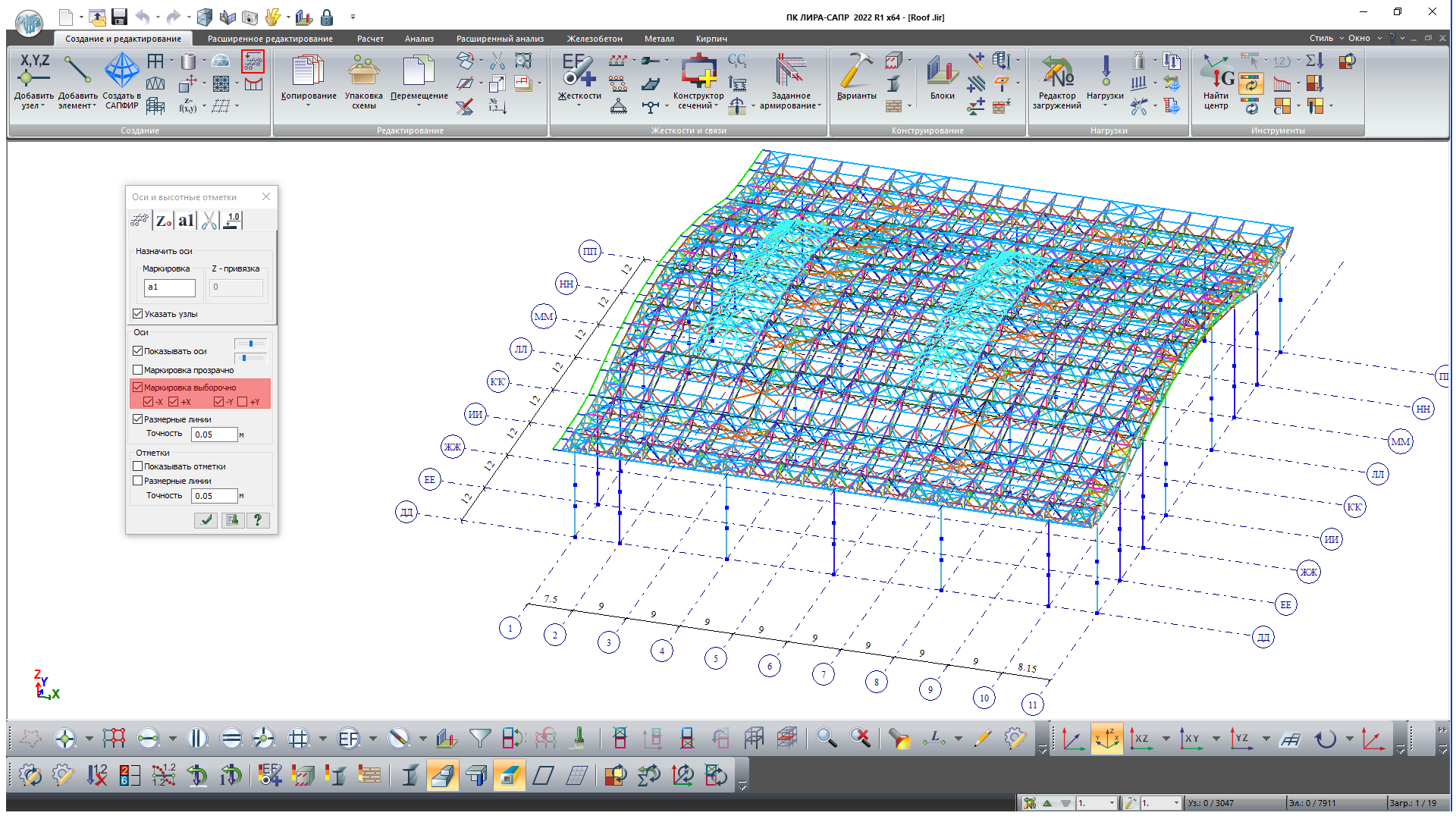 - В диалоге “Суммирование нагрузок” добавлена возможность корректировки величин итоговых значений нагрузок отдельно по каждому направлению и по каждому загружению. Данная опция доступна в режиме Архитектура и в режиме Расчетная модель.