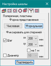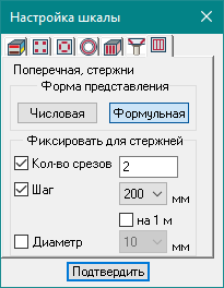 - При выводе результатов расчета поперечного армирования в виде цветных мозаик, реализован гибкий инструмент настройки шкалы. Использование этого инструмента значительно упрощает анализ, и ускоряет выдачу результатов на конструирование: