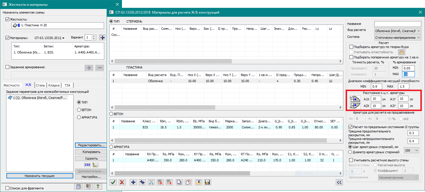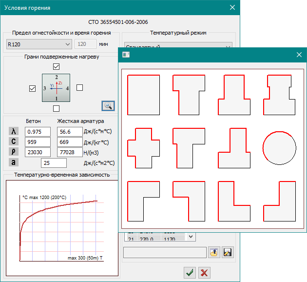 - В стержневых и пластинчатых элементах реализован подбор необходимой площади поперечной арматуры из условий огнестойкости.