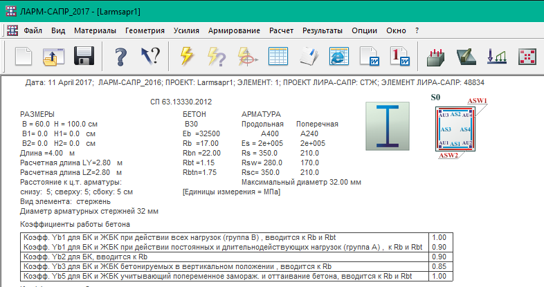 Конструирование отдельного железобетонного элемента в соответствии с нормативными требованиями. ЛАРМ входит во все стандартные конфигурации LIRA-FEM.
